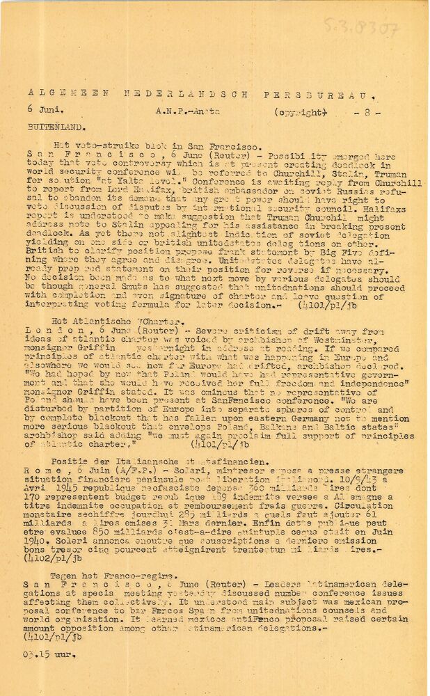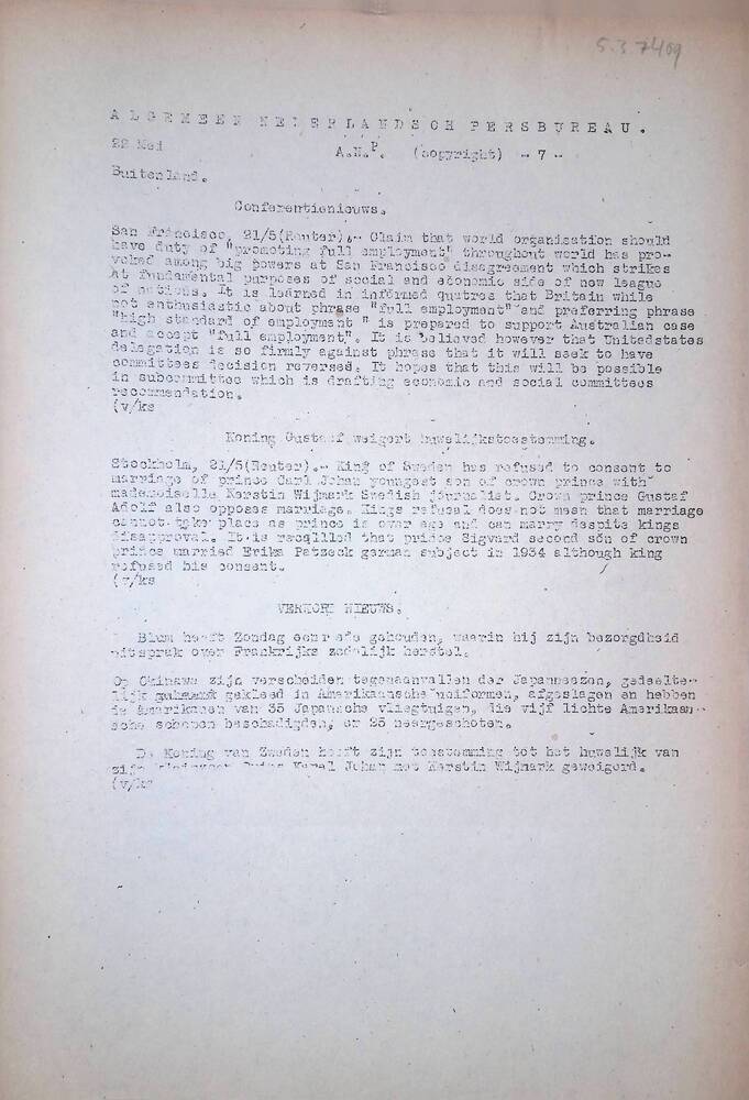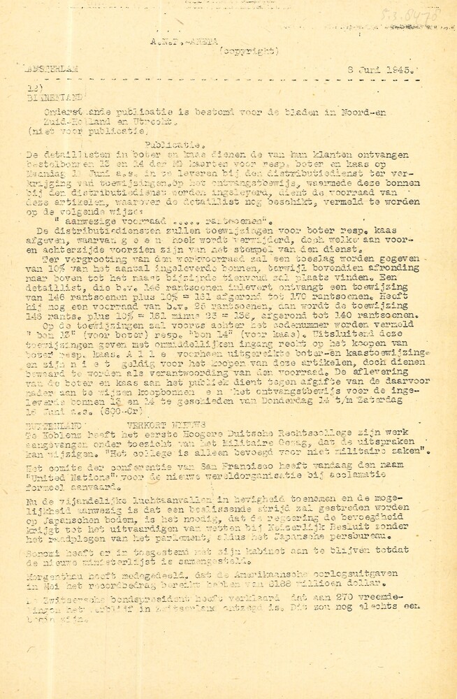 Vel: Algemeen Nederlandsch Persbureau, mededelingen,...