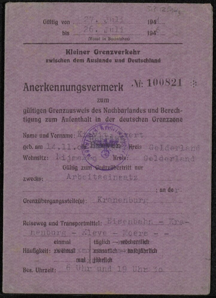 Anerkennungsvermerk Nr. 100821 zum gültigen Grenzaus...