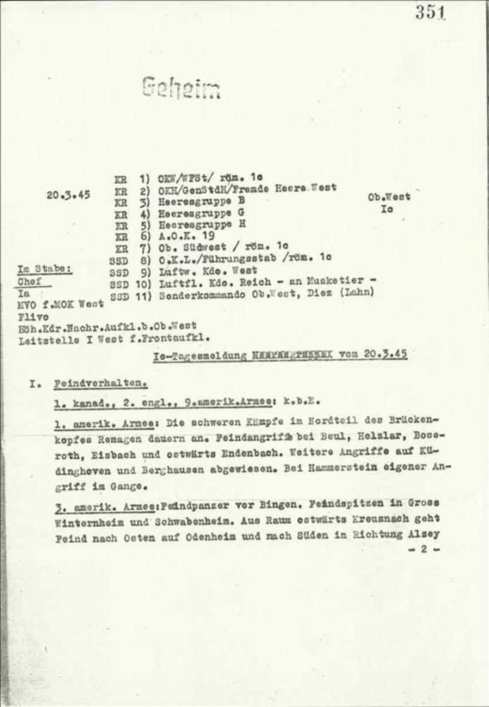 Bericht van de Oberbefehlshaber West / röm, 1 c nr 1...