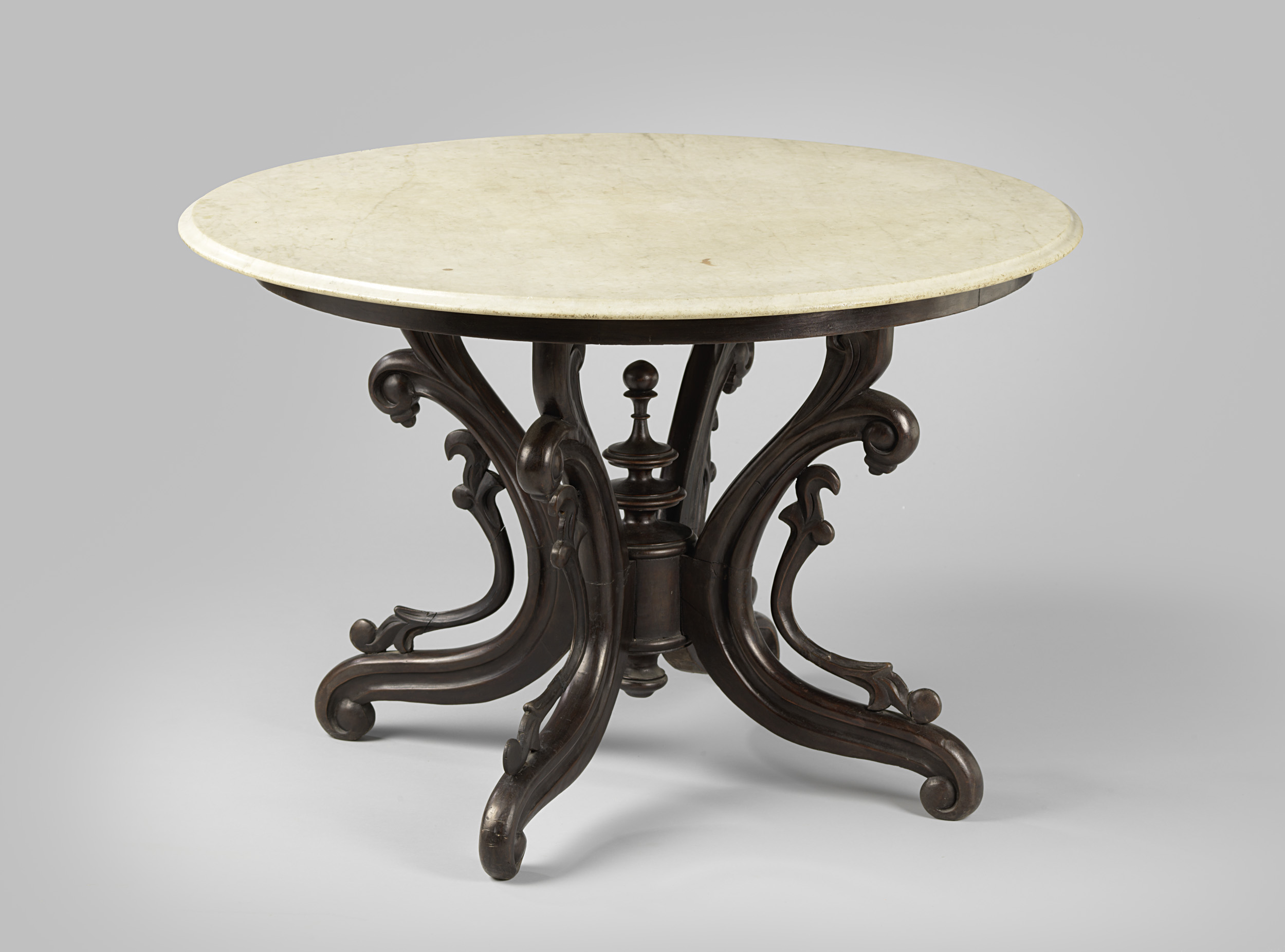 Gueridon met stam bestaande uit schubben, knoppen en...