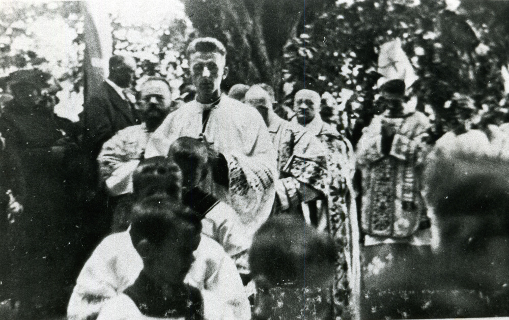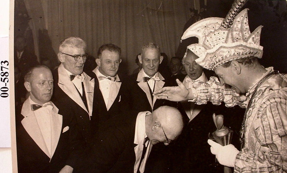 Zwart-wit foto van de intrede van Jan Jansen in Herw...