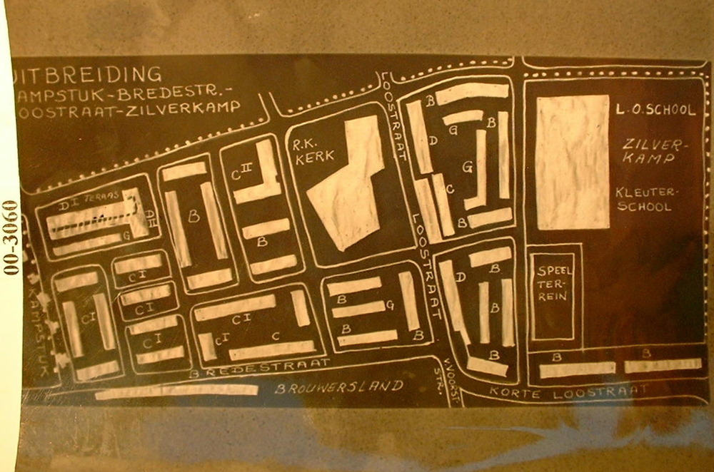 Tekening van de uitbreiding Kampstuk-Bredestraat-Loo...