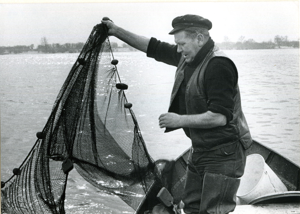Zwart-wit foto van palingvisser Adri van Sonsbeek te...