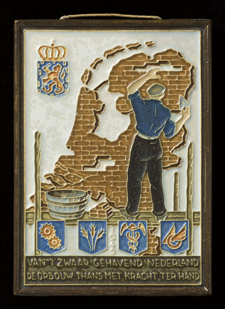 tegel van keramiek met tinglazuur, voorstellende: or...