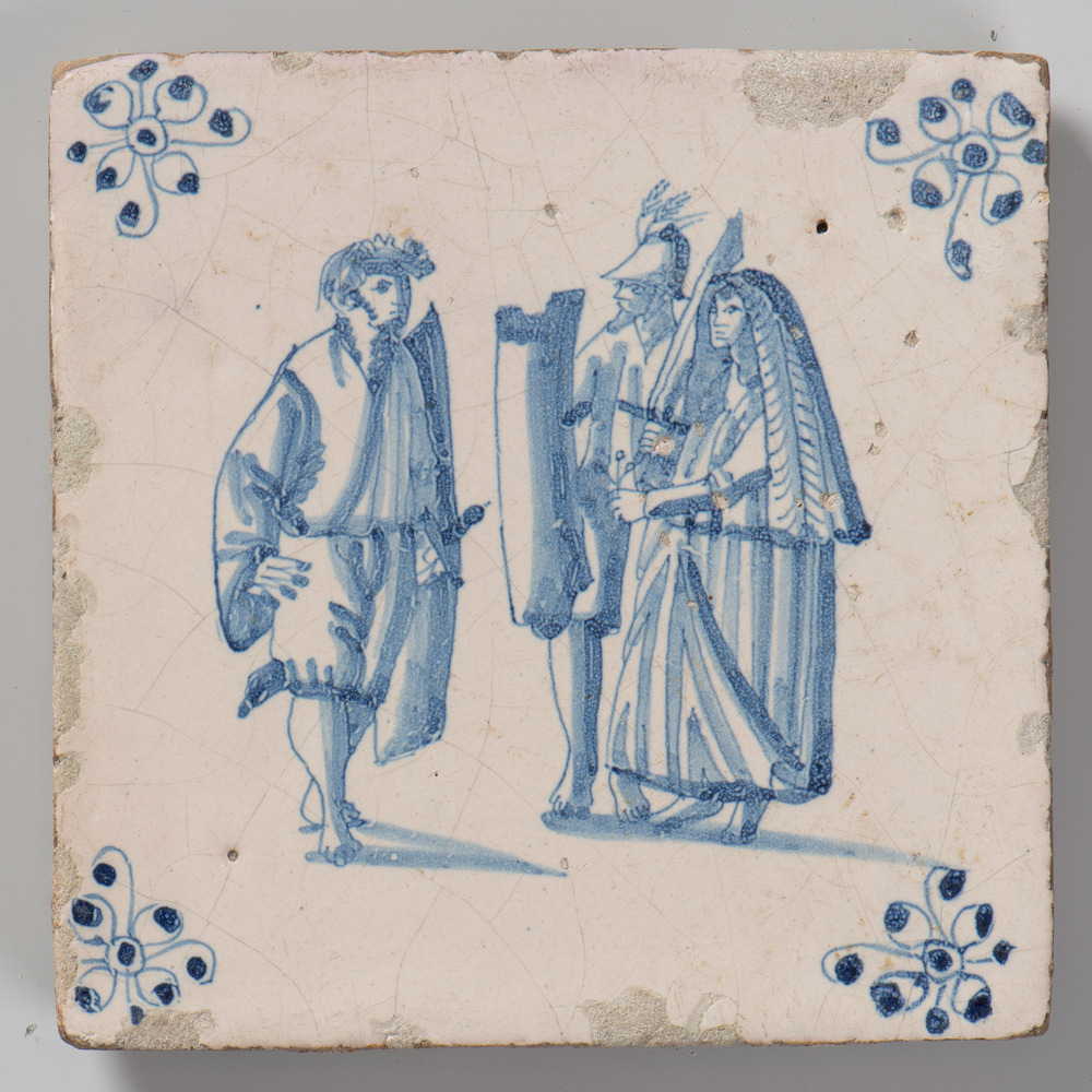 tegel van aardewerk met tinglazuur, voorstellende: d...