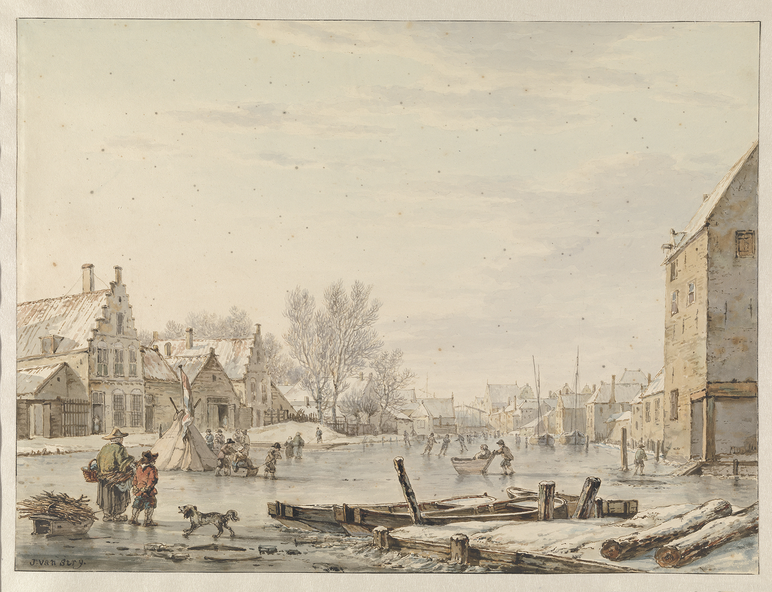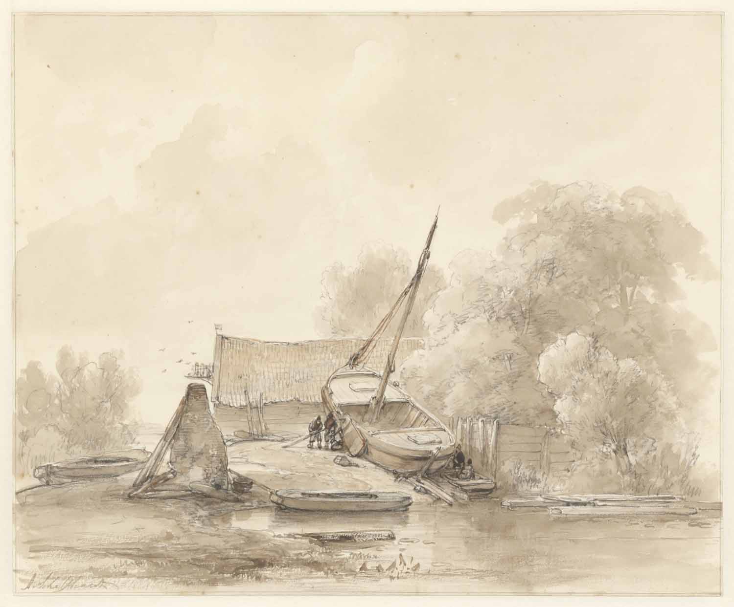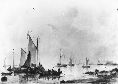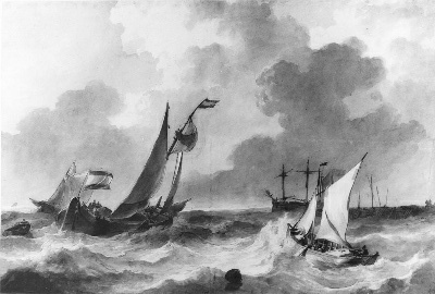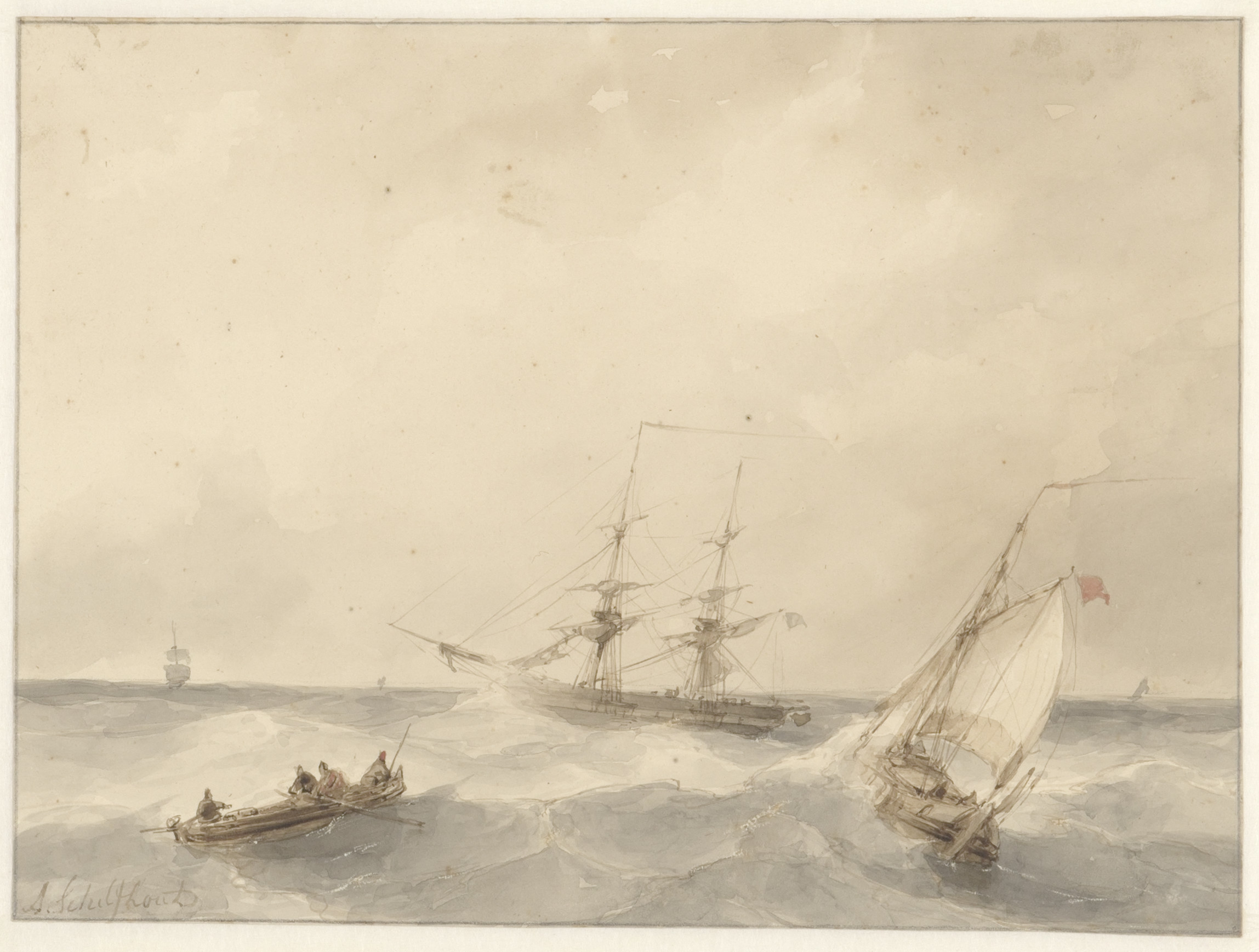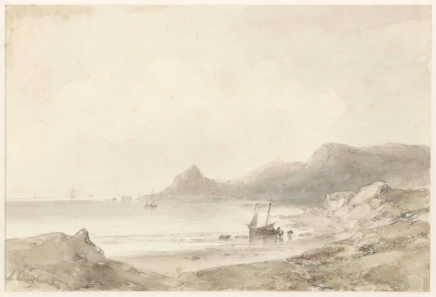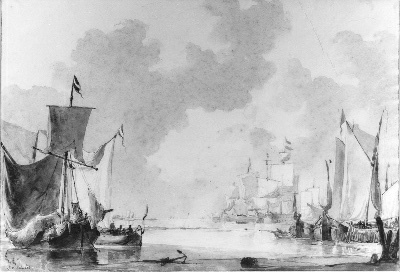Het inkomen van twee beurtschepen in eene haven bij ...
