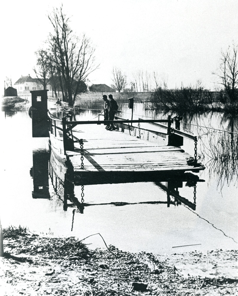 Zwart-wit foto van het Berghoofdse Veer in Pannerden...