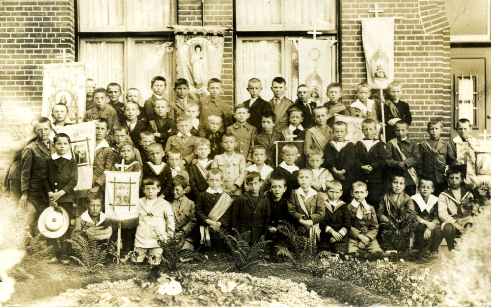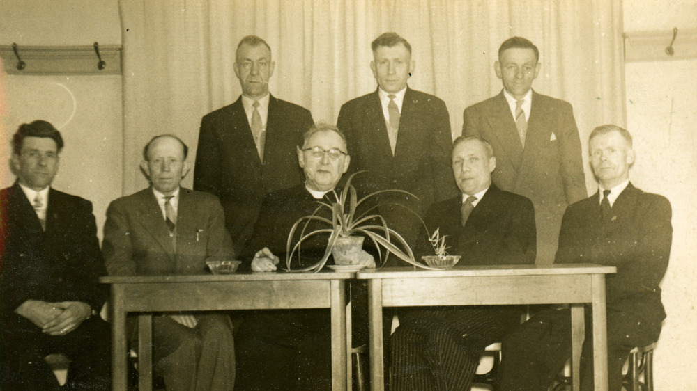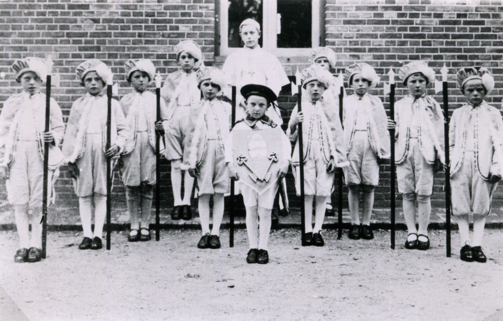 Zwart-wit foto van de leden van het Pauselijk Genoot...