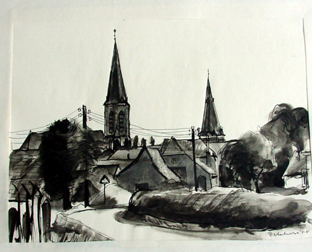 Tekening op papier met Oost-Indische inkt van Gendri...