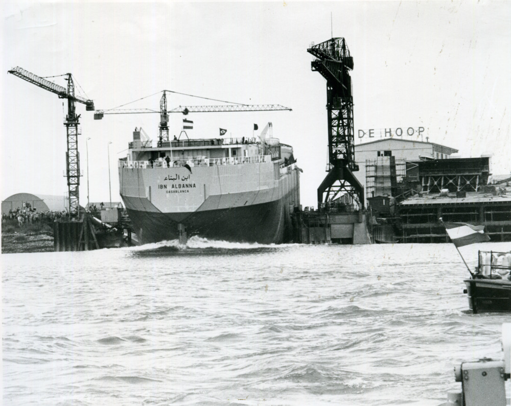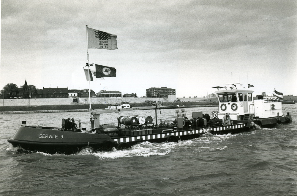 Zwart-wit foto van de nieuwe bunkerboot Service Cent...