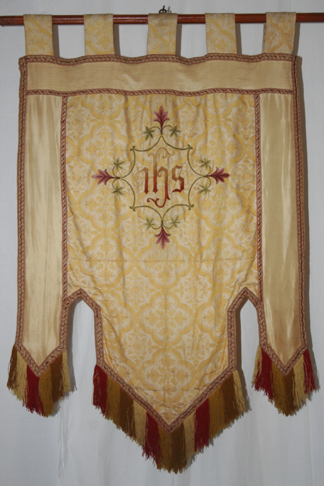 Vaandel van textiel met het monogram IHS gebruikt in...