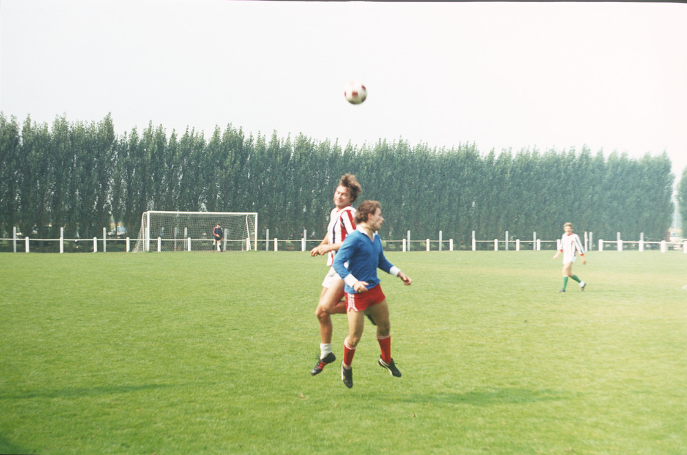 Kleurendia van een herenvoetbalwedstrijd uit een dia...