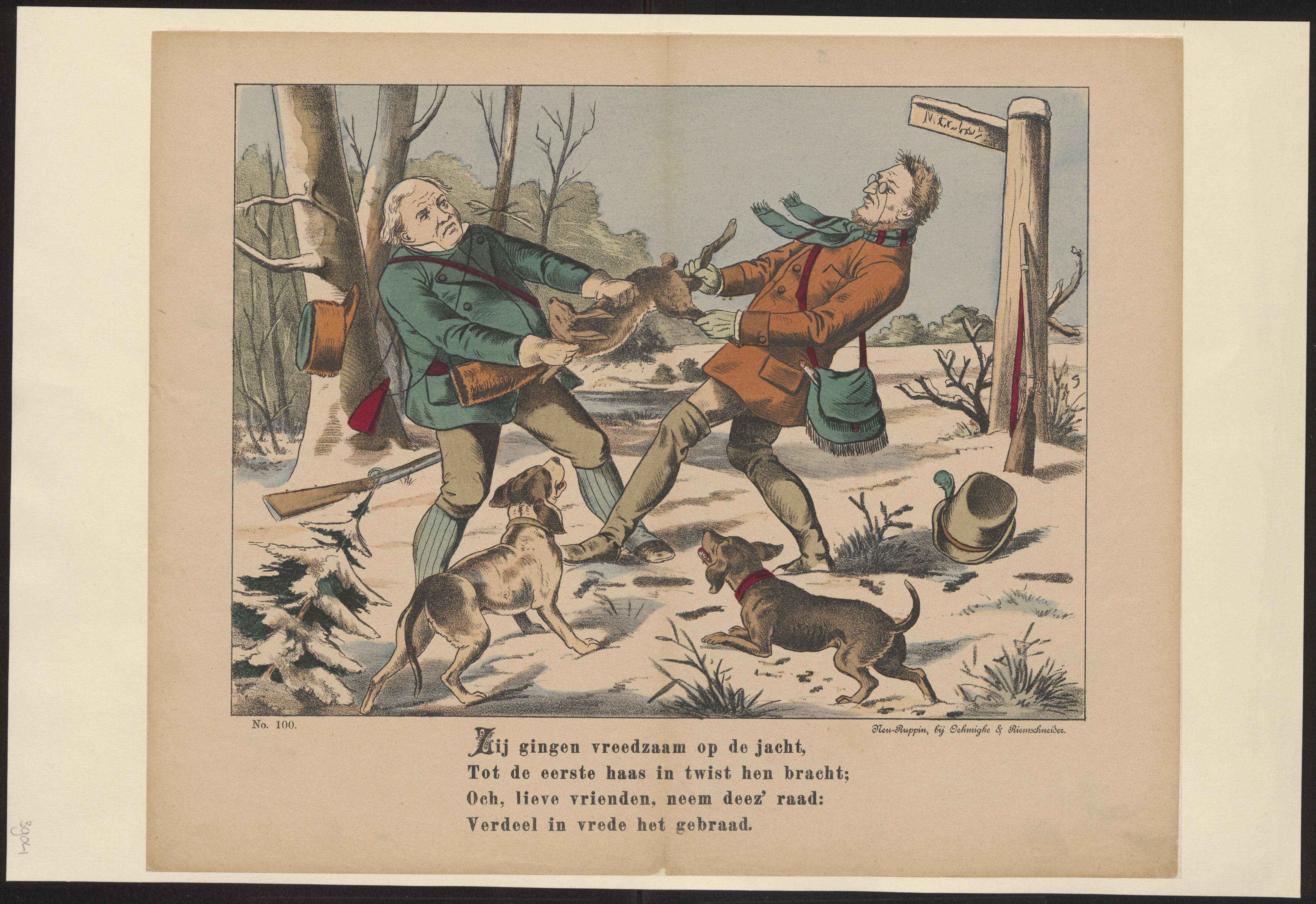 Zij gingen vreedzaam op de jacht, / Tot de eerste ha...
