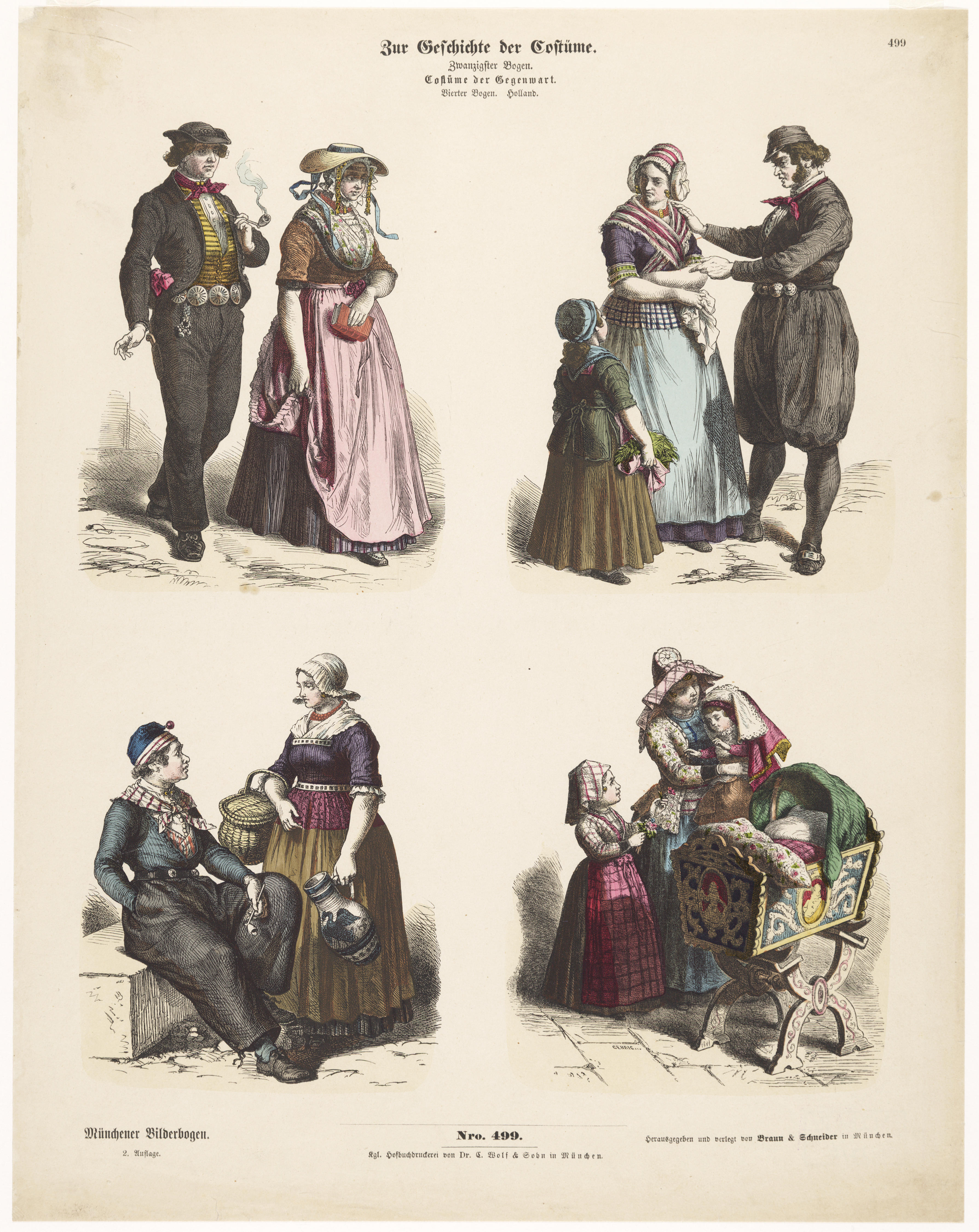 Vier afbeeldingen van streekdracht: Walcheren, Urk, ...