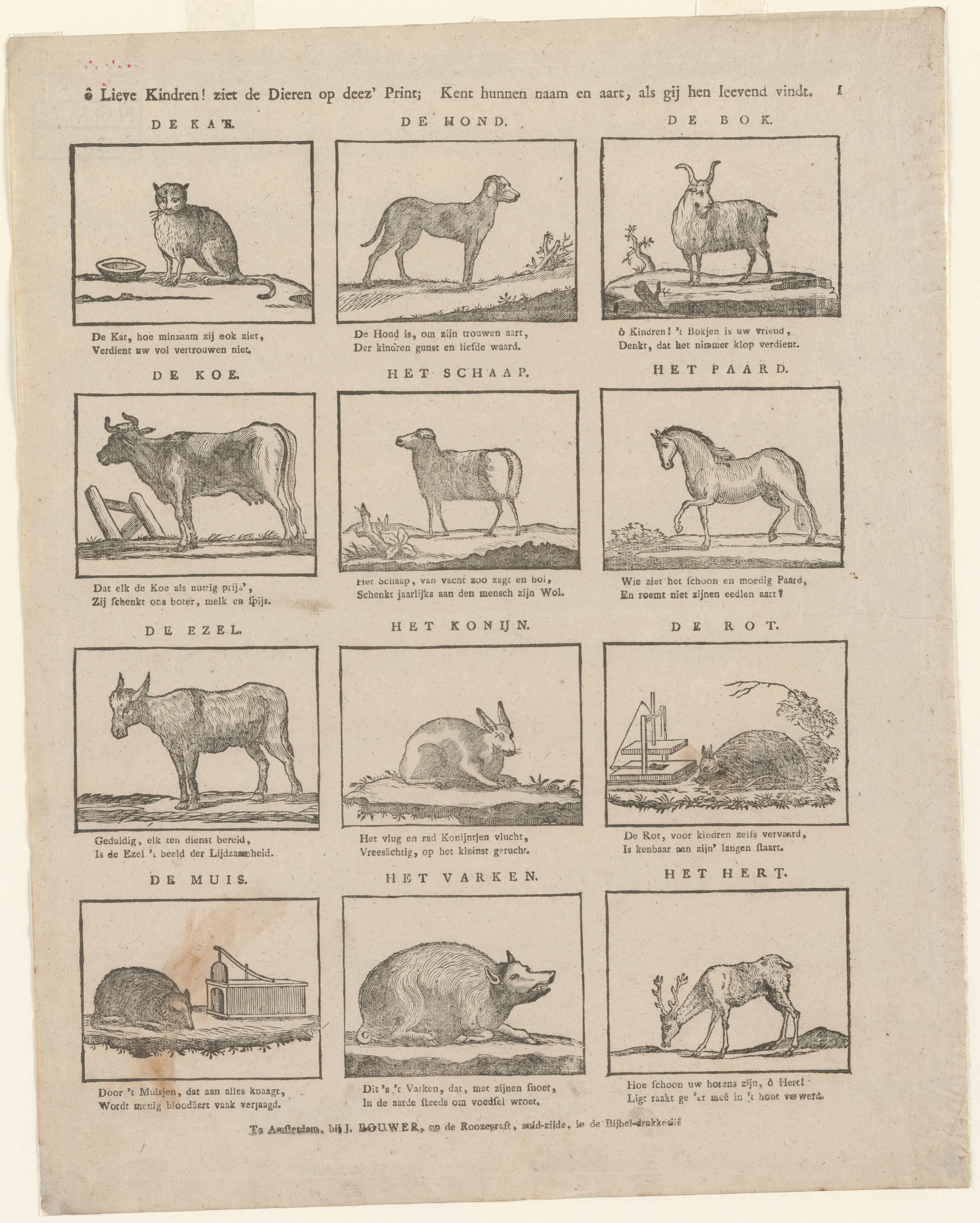 o Lieve Kindren! ziet de dieren op deez' Print; Kent...