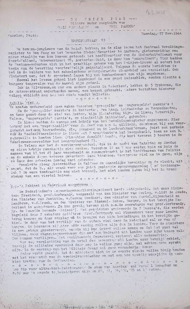 De Vrije Pers ( diverse uitgave ), De Vrije Pers, No...
