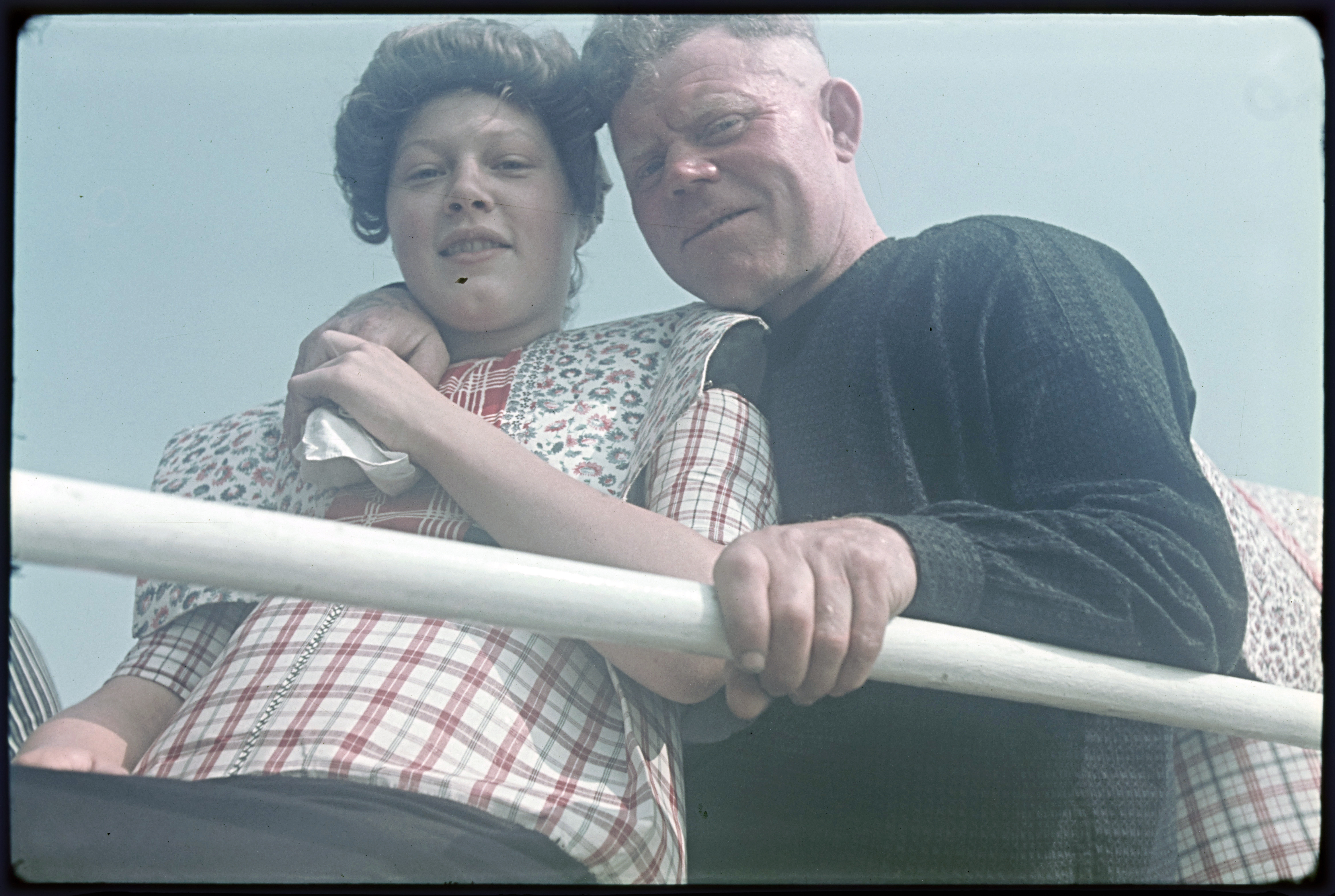 Man en vrouw in klederdracht bij de bootleuning tijd...
