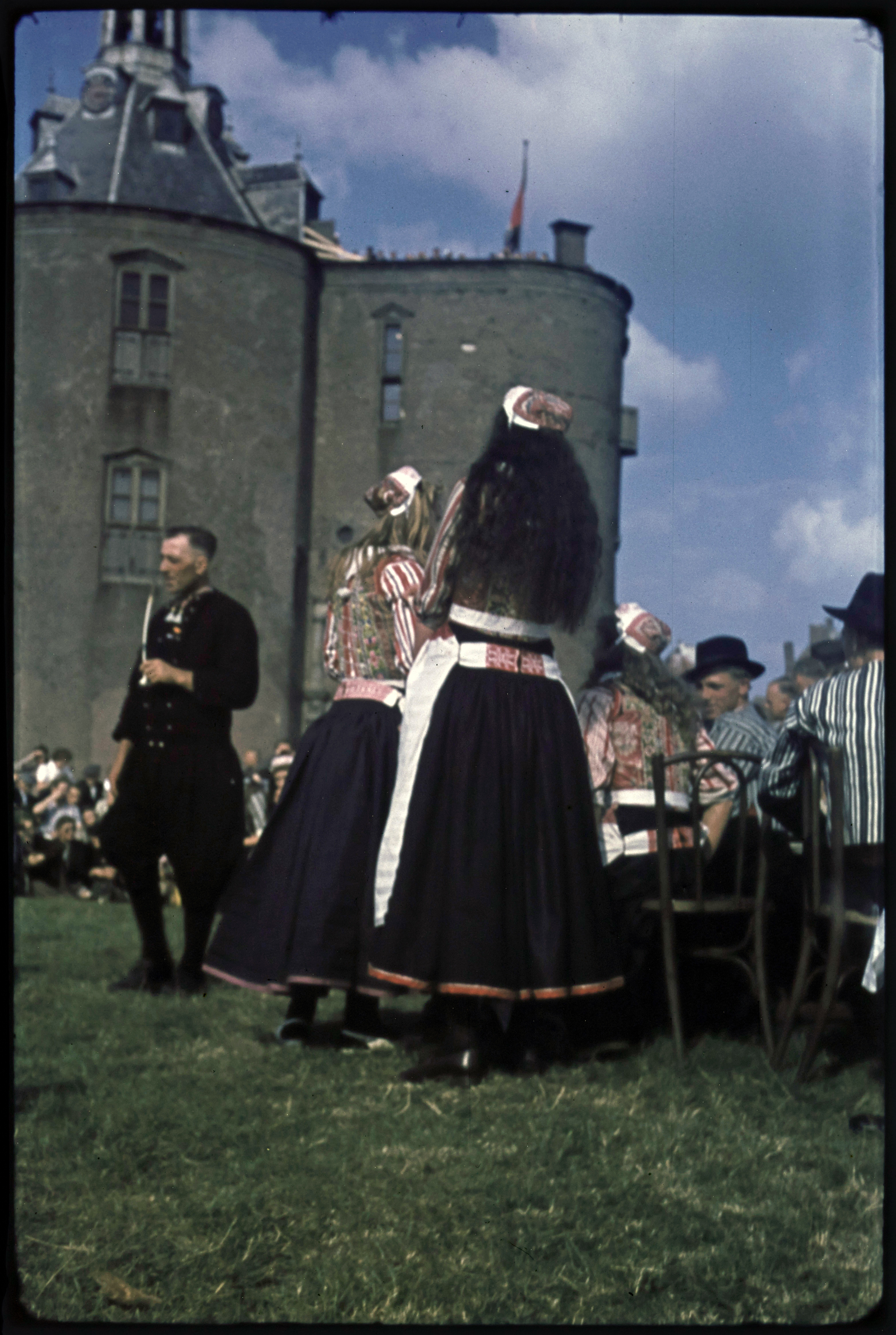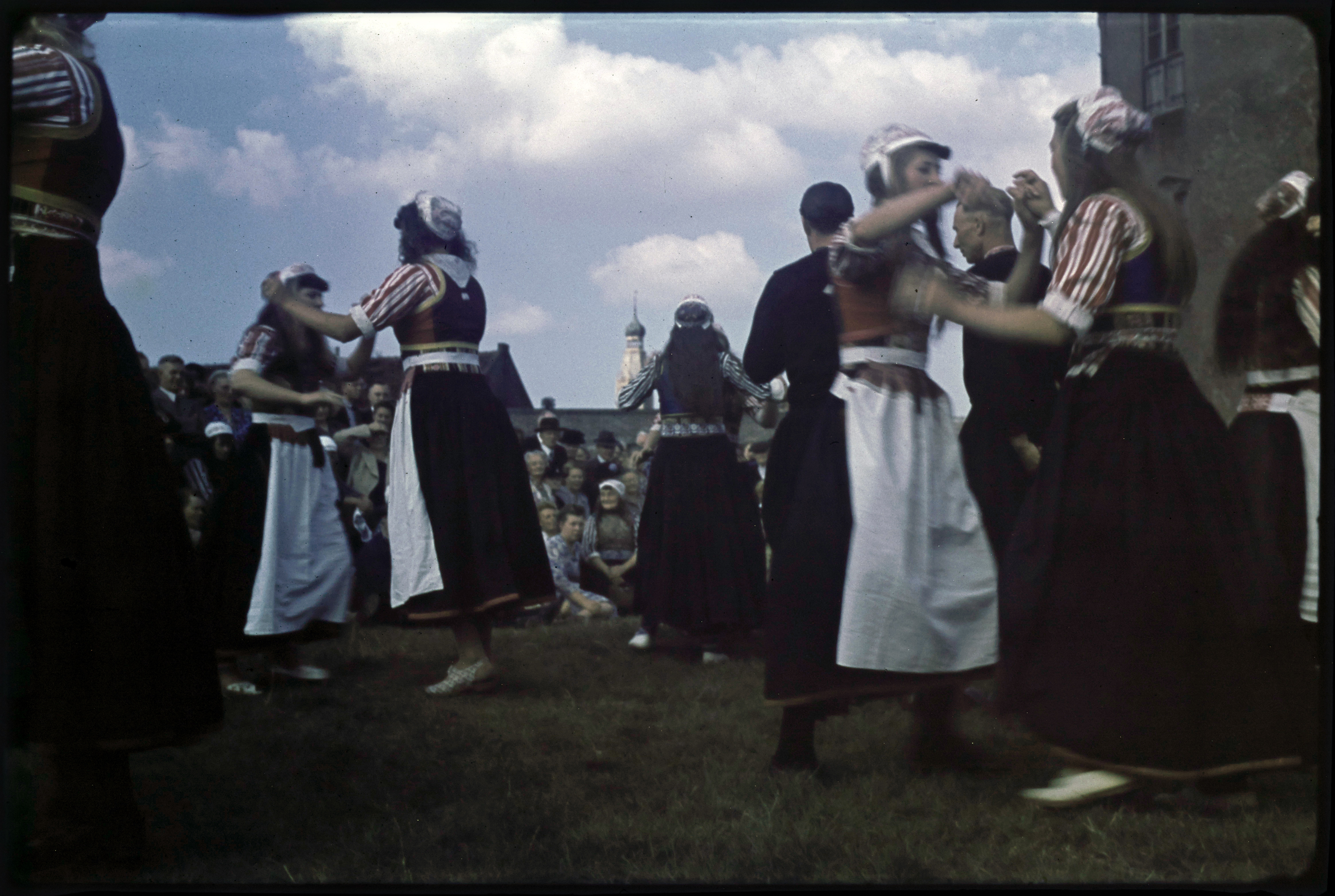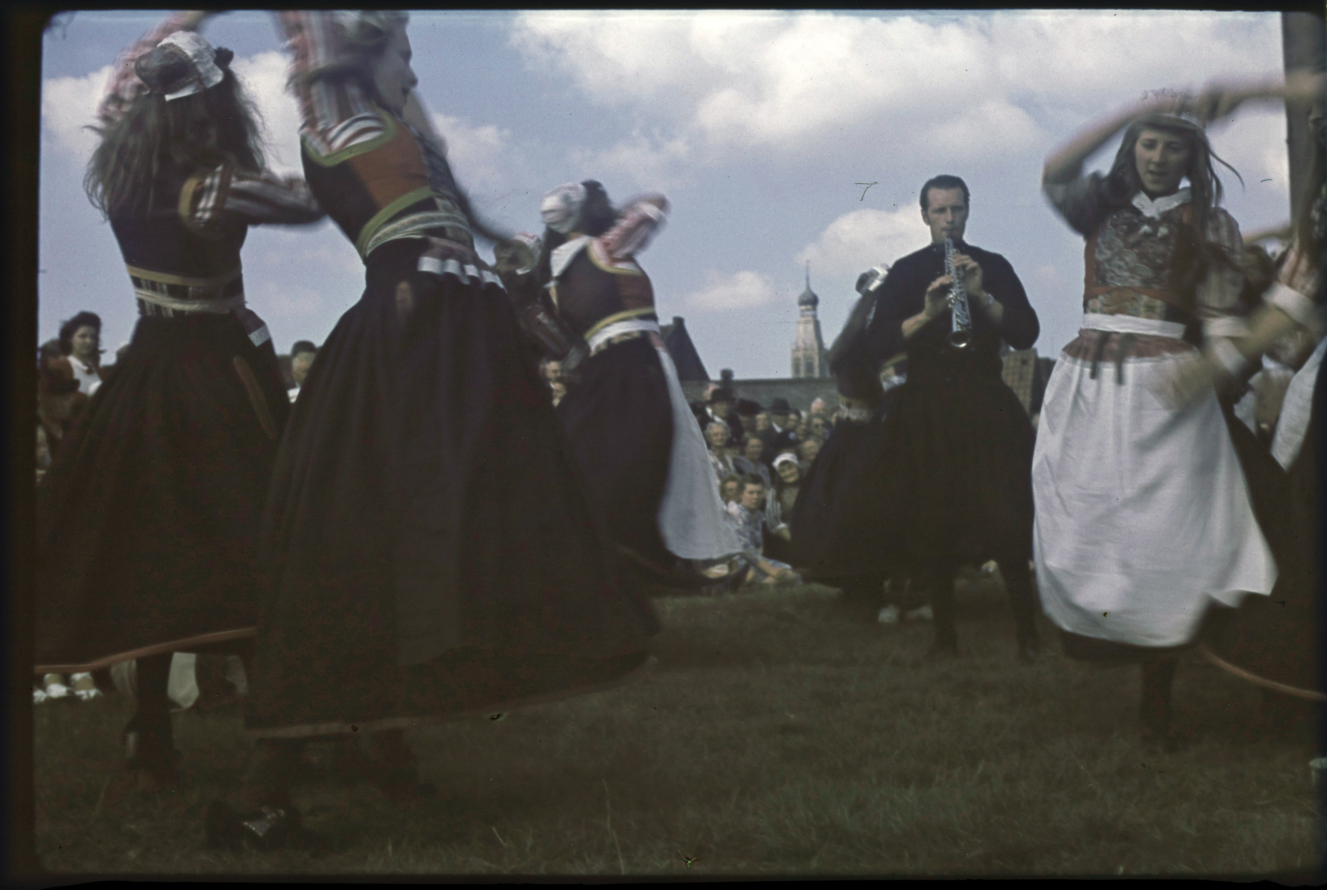 Menigte in klederdracht op een boot tijdens de Spake...