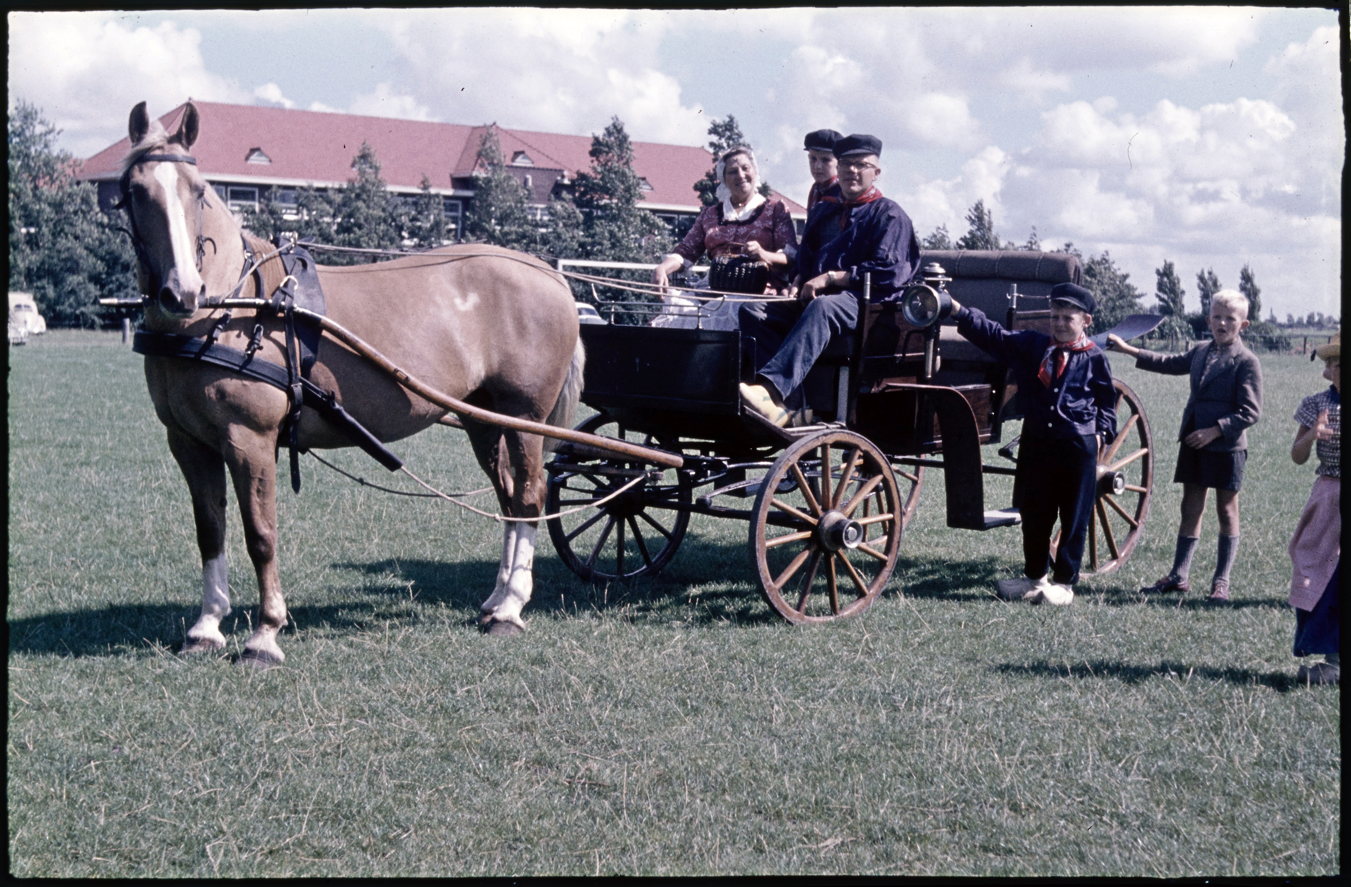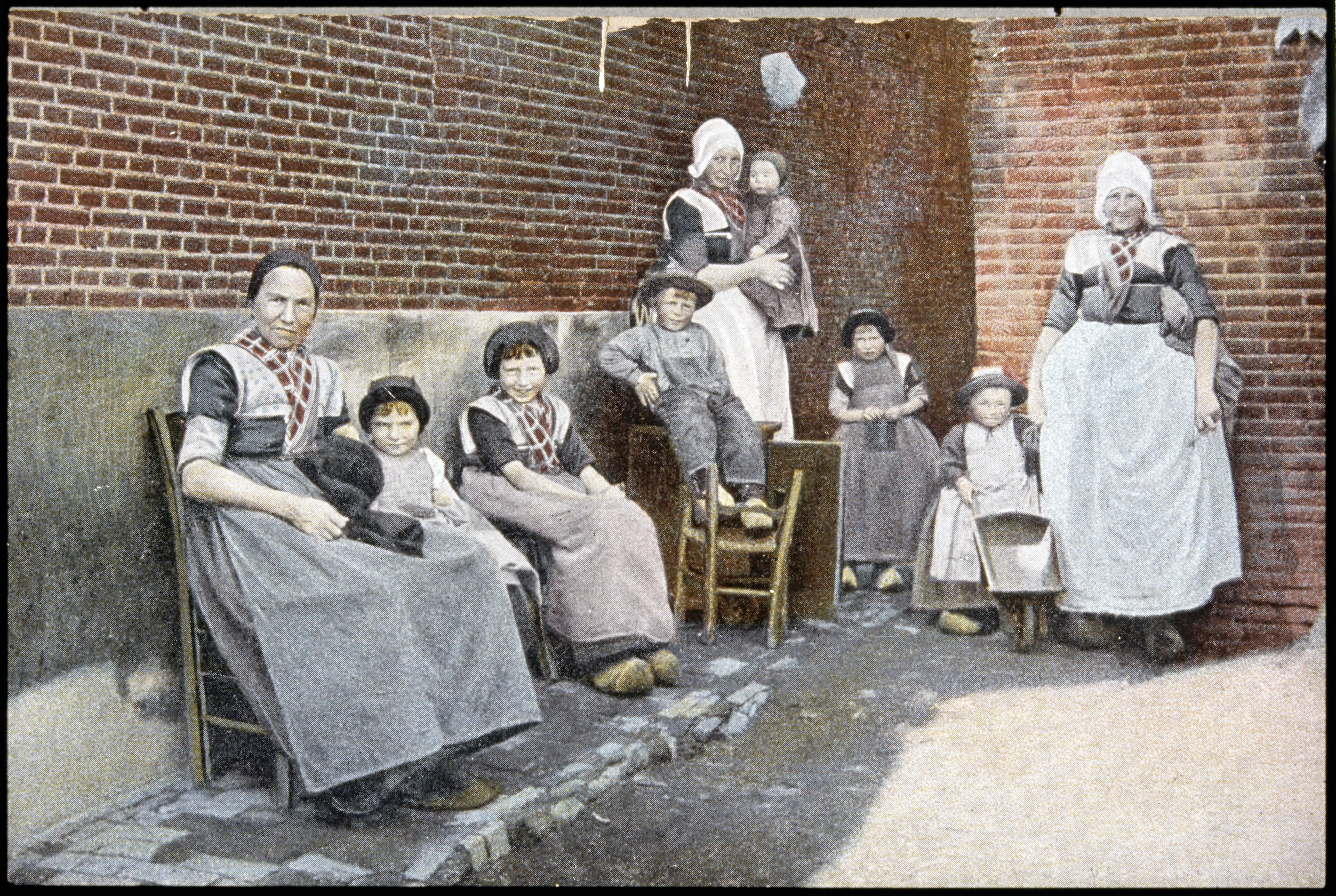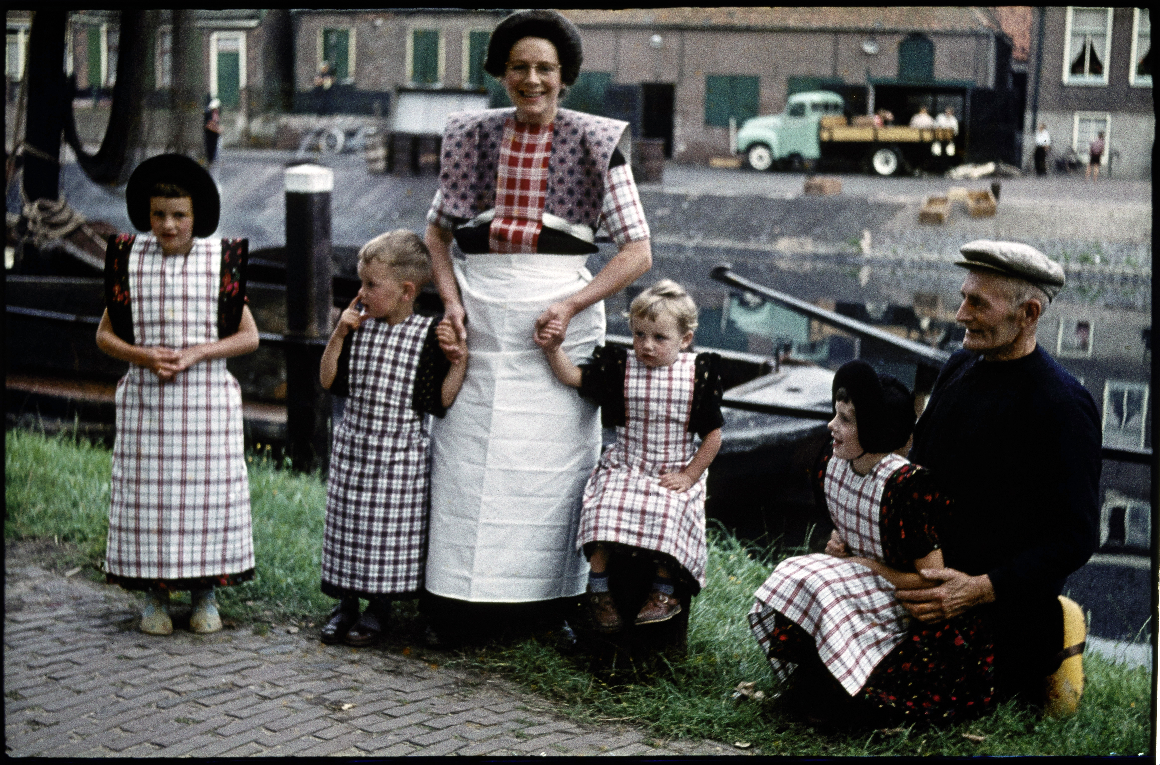 Vrouw en man met kinderen in klederdracht