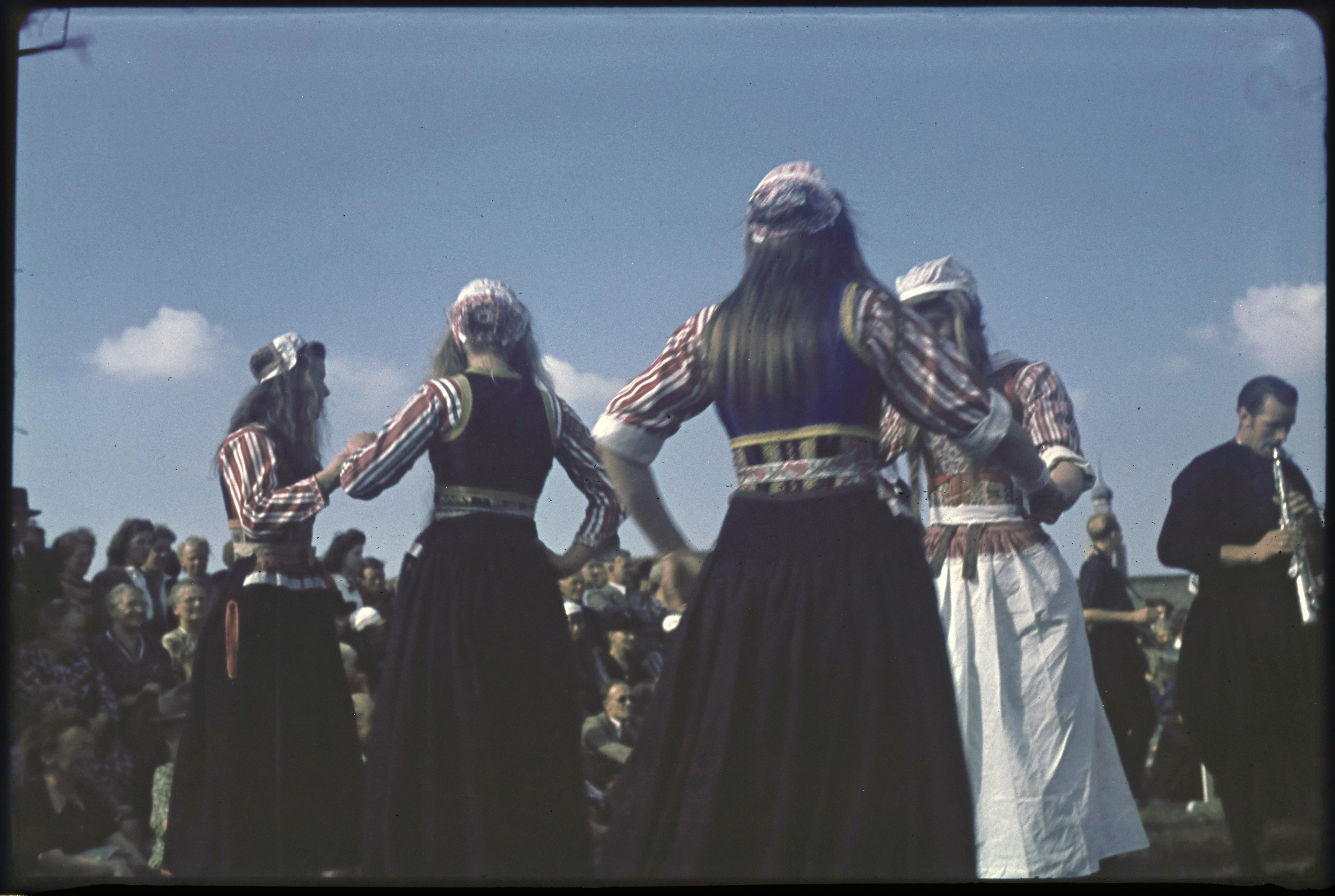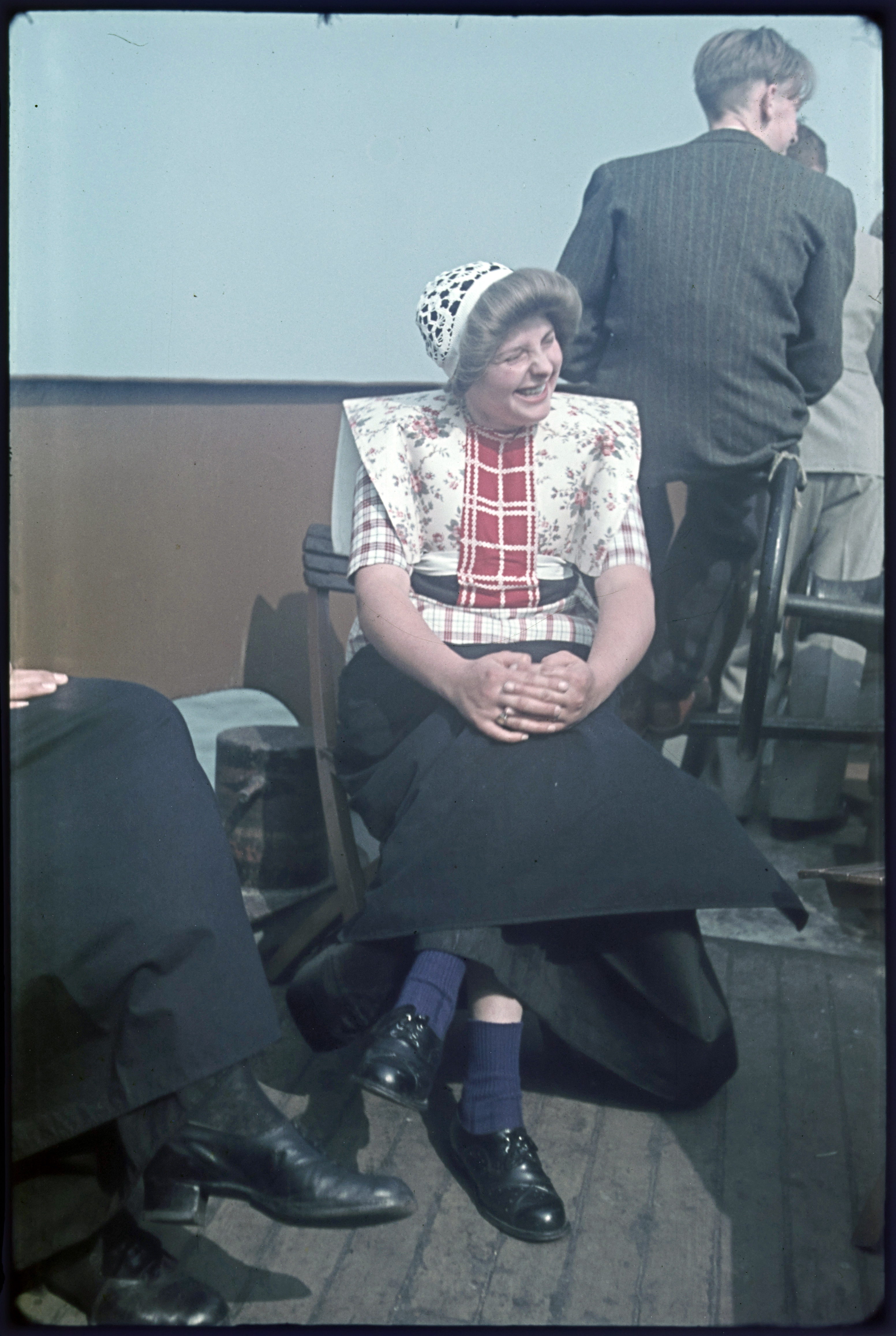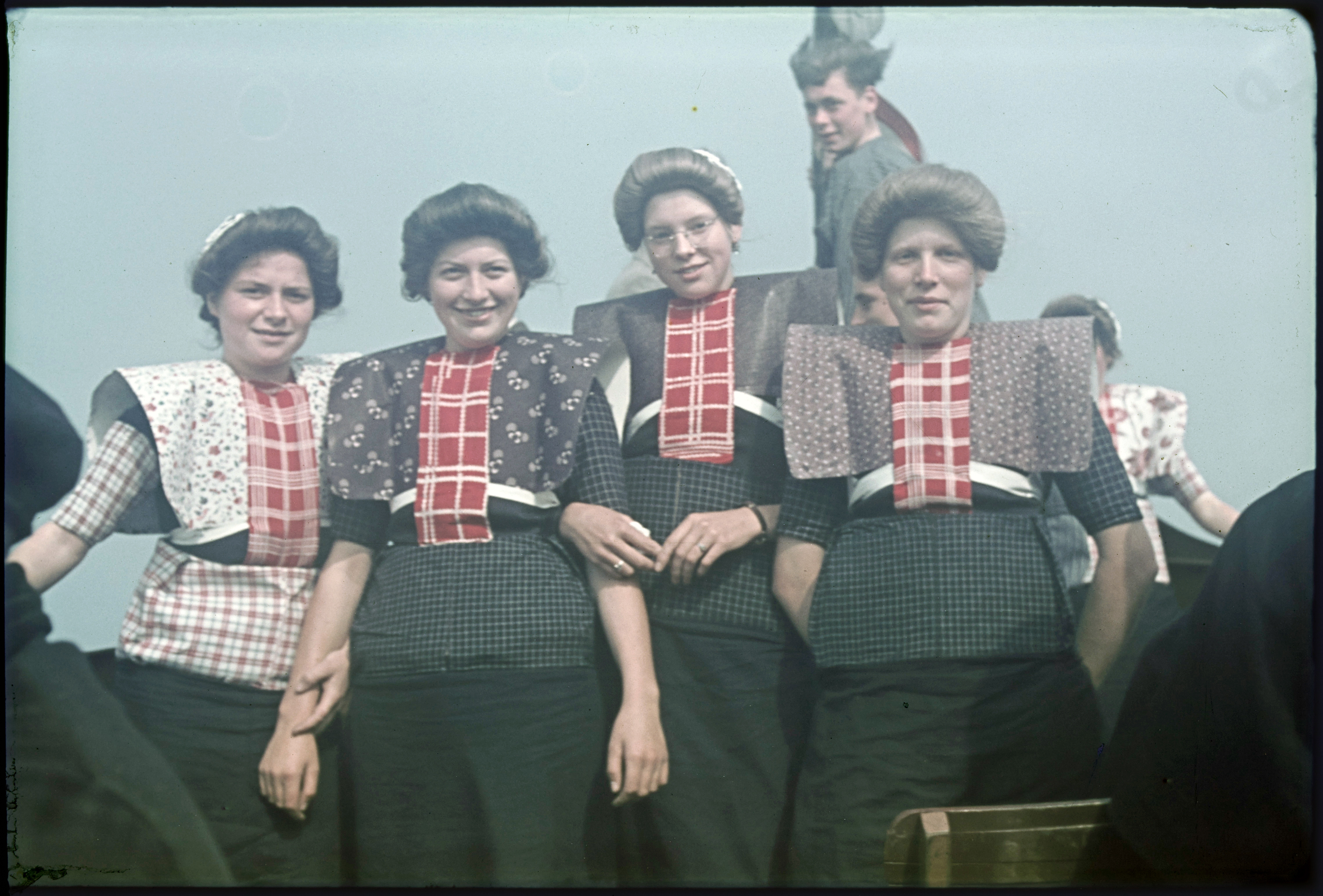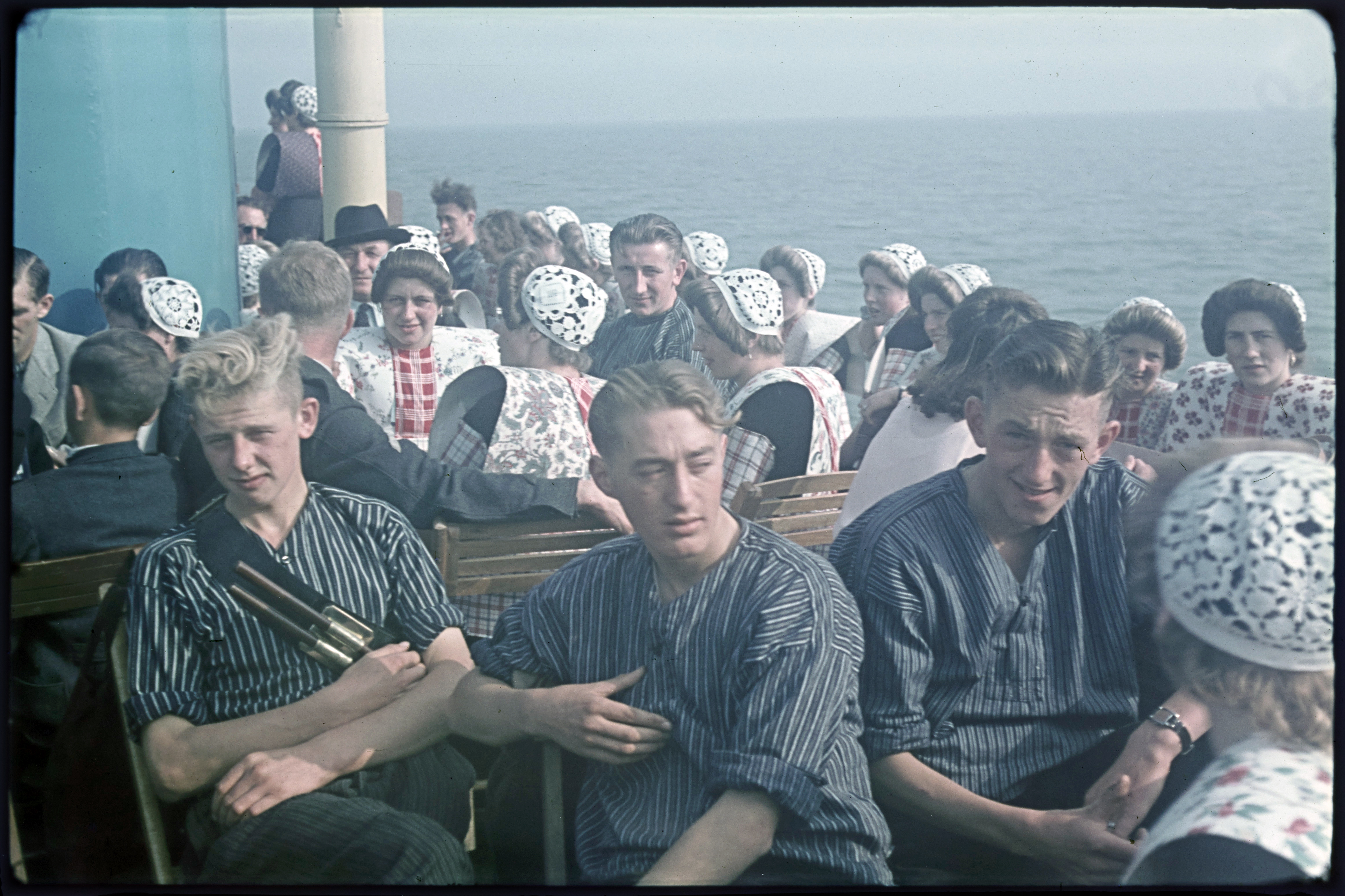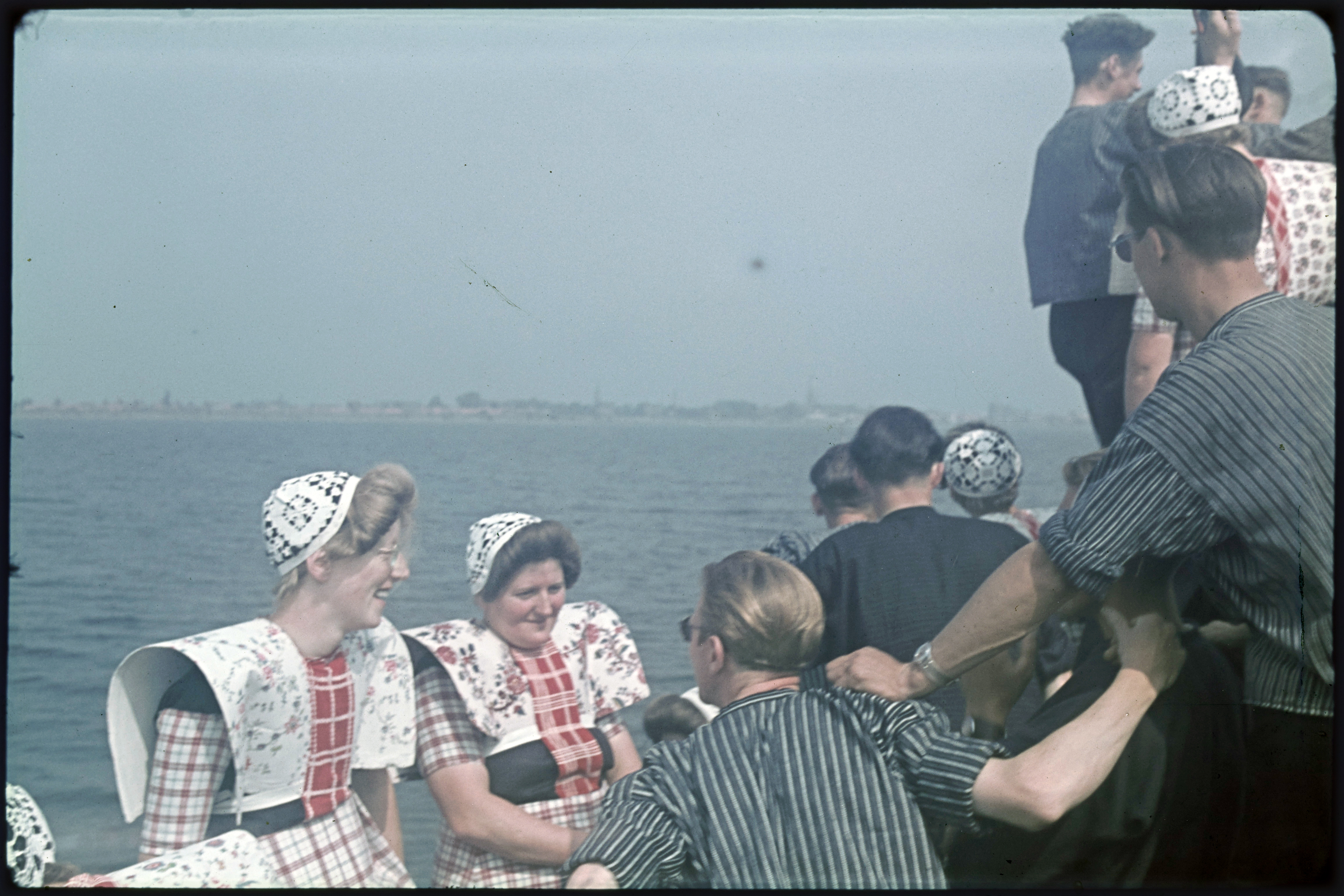 Vrouwen in klederdracht tijdens boottocht.