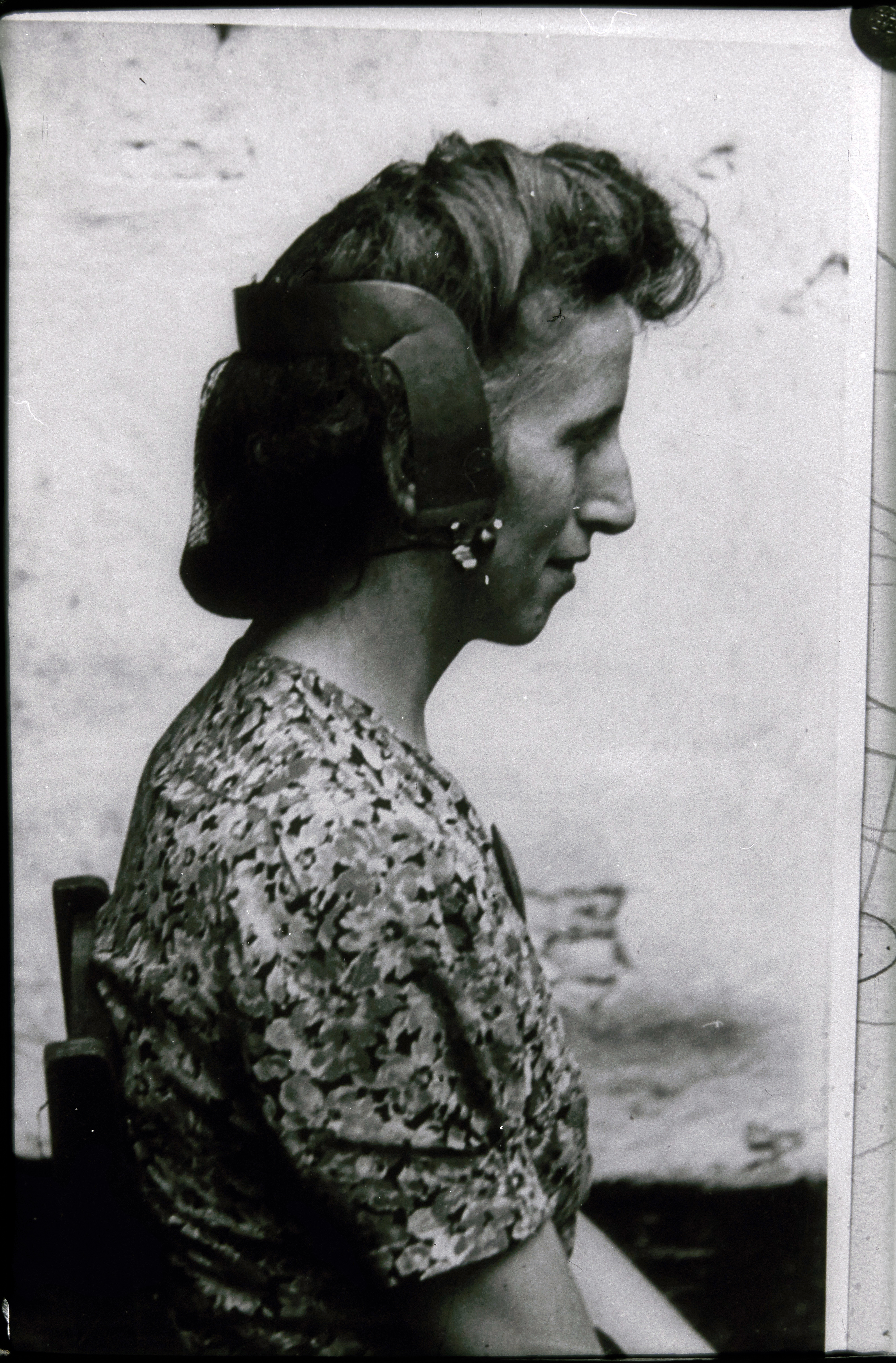Vrouw met zilveren oorijzer.
