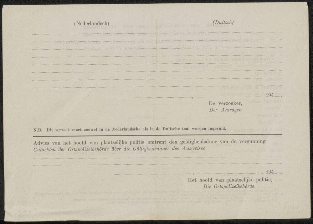 Verzoek om uitreiking van een vergunning/Antrag auf ...