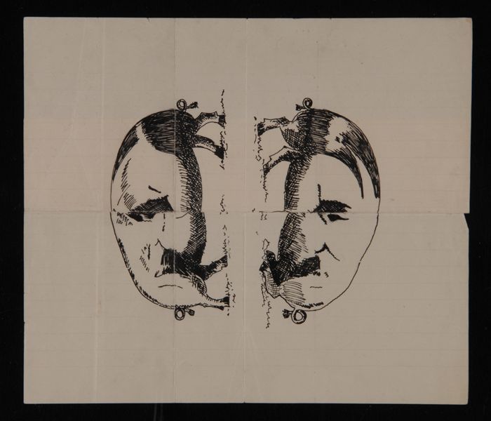 Prentbriefkaart met spotprent op Hitler, met tekst: ...