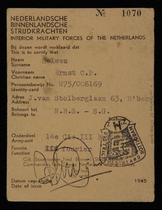 "Sonderausweis" voor E.C.P. Helwes, ten behoeve van ...