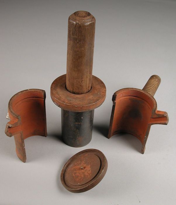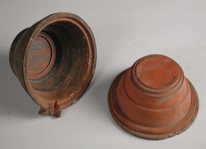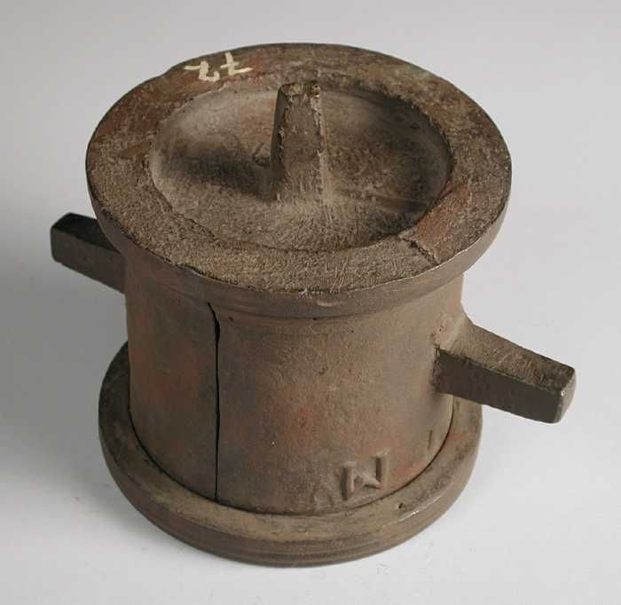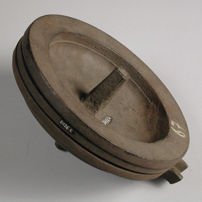 Tweedelige bronzen mal voor bovenkant pot of kan