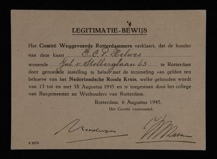 Legitimatie-bewijs ten behoeve van geldinzameling Ne...