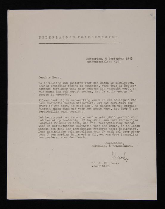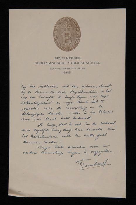 Dankbetuiging van Prins Bernhard aan leden van de Ne...