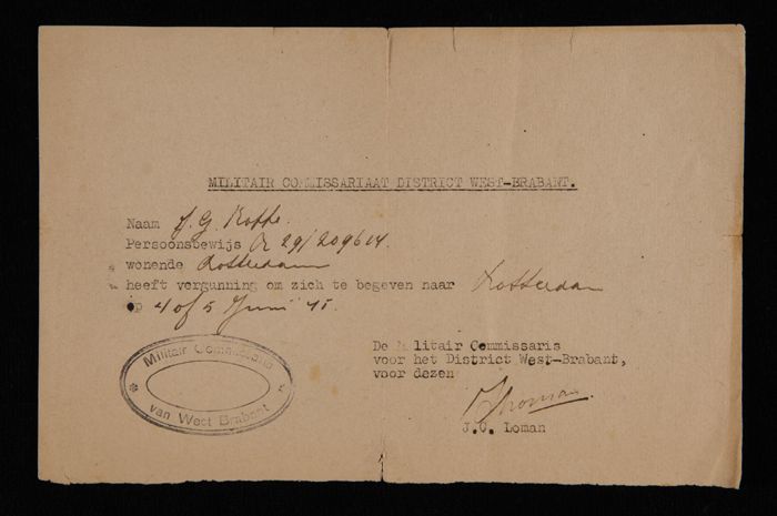 Vergunning van het Militair Commissariaat District W...