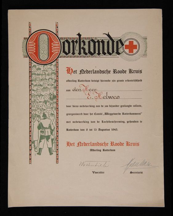 Oorkonde van het Nederlandse Rode Kruis, aan de heer...