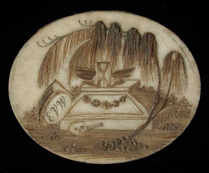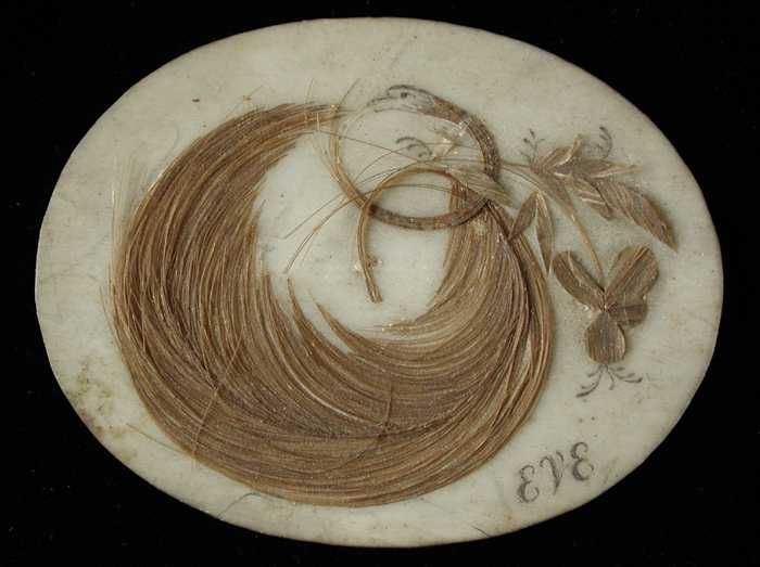 Haarwerkje op ovaal medaillon, memoriestukje ter her...