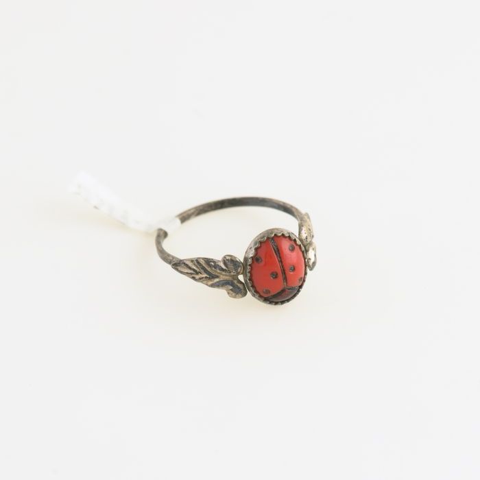 Zilveren kinderring met kunststoffen rood-zwart liev...
