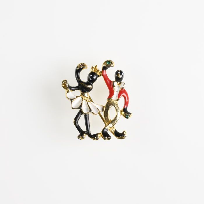 Wit plastic kinderbroche, voorstellend paar kunstsch...