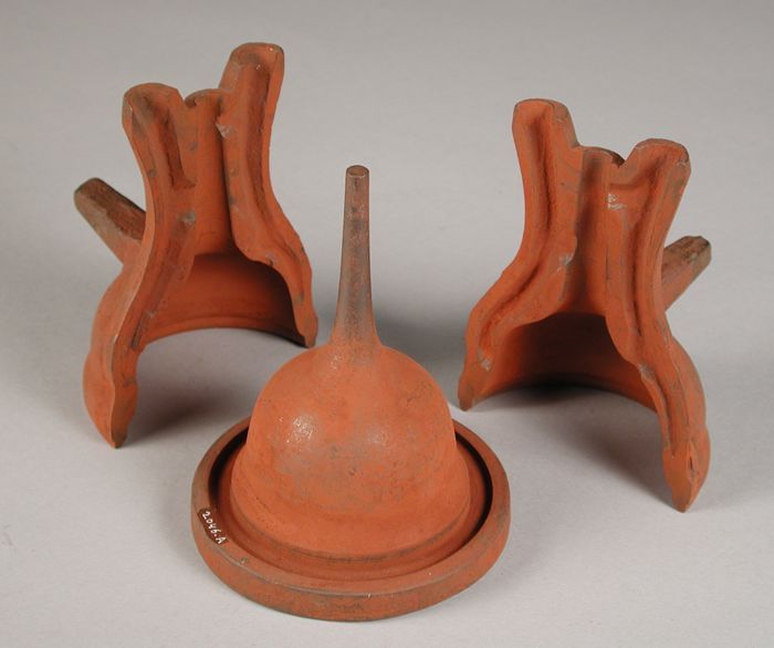 Driedelige bronzen mal voor deksel van kamerpot
