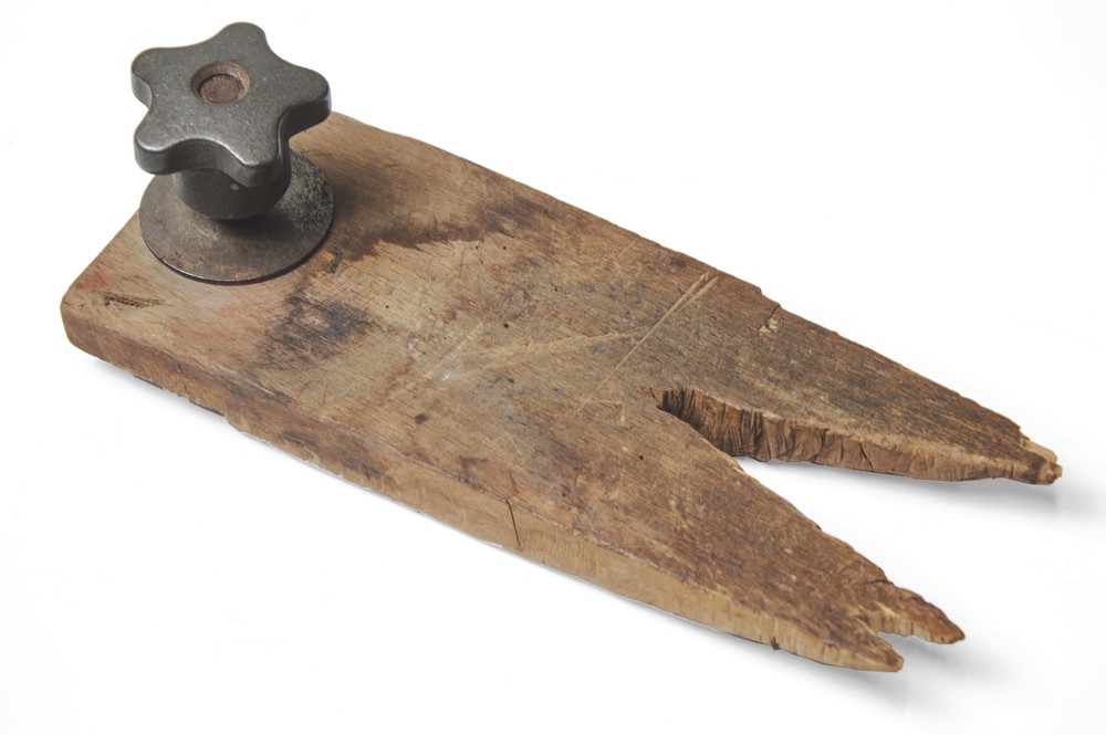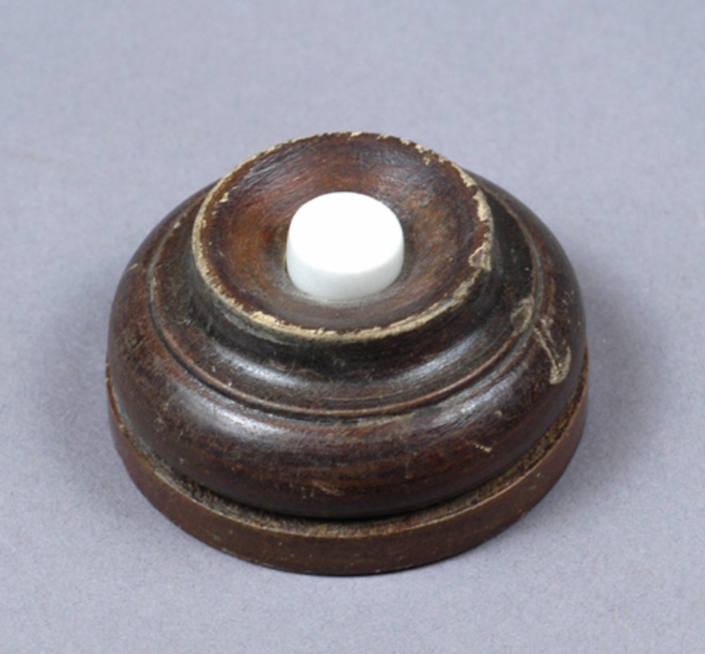 houten dienstbodebel met drukknop van keramiek