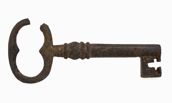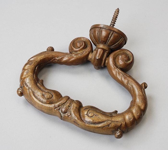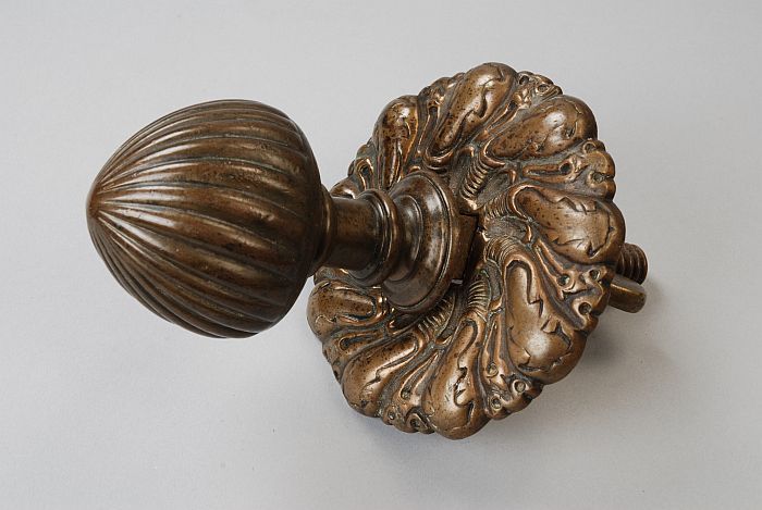 Zware koperkleurige deurknop, bestaande uit uivormig...