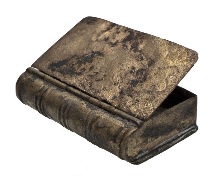 Messing doos, in de vorm van gebonden boek, rozenkra...