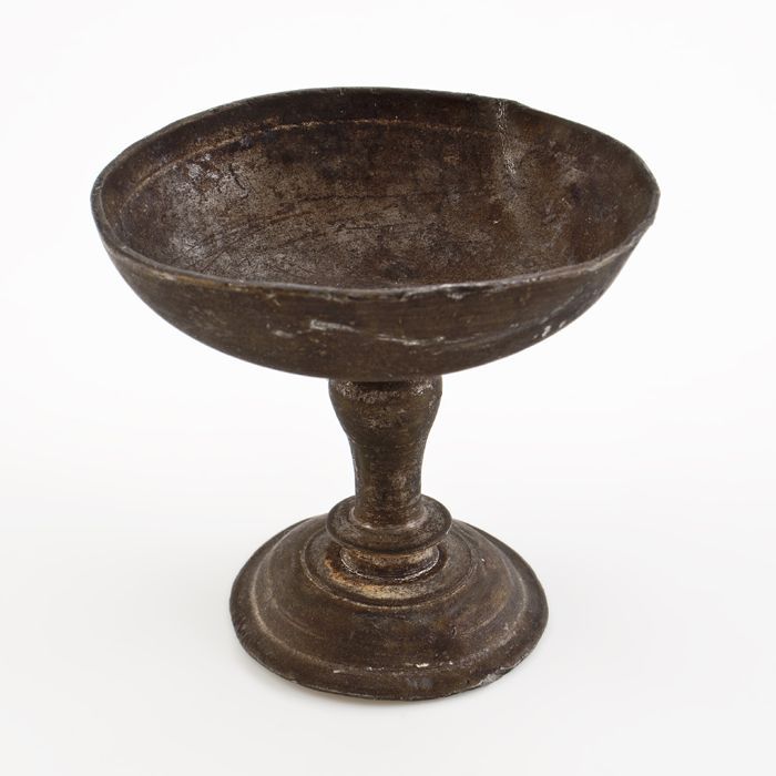 Klein tinnen zoutschaal in de vorm van een kelk, geg...