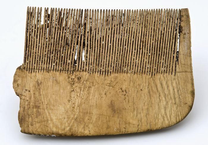 Fragment ivoren of benen kam met fijn gezaagde tanden