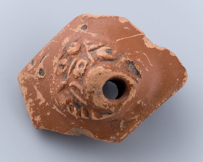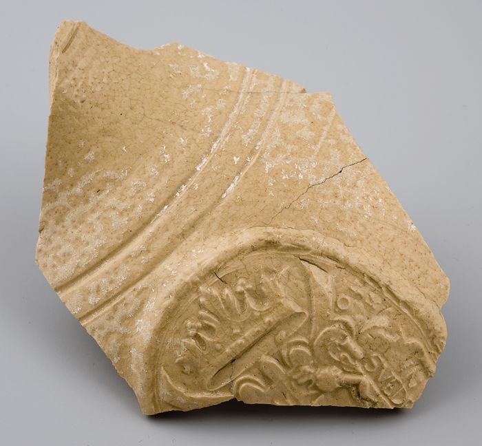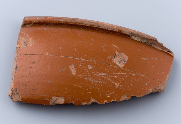 Aardewerkfragment, terra sigillata met leeuwenkoptuit