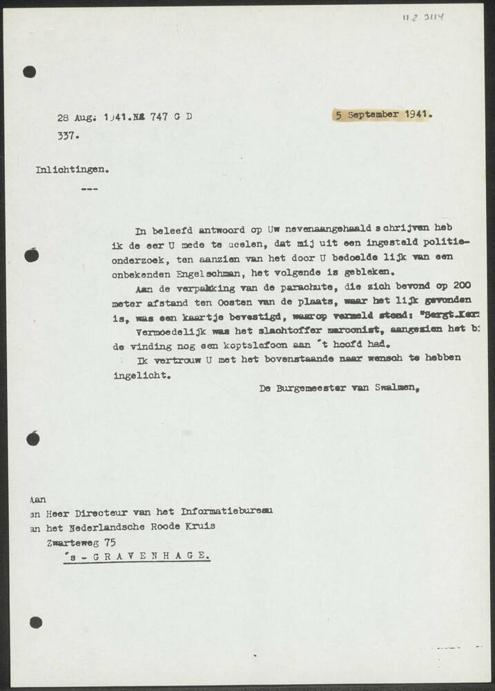 Rapport Burgemeester van Swalmen 05-09-1941.