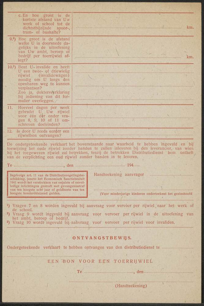 Aanvraag voor een toerrijwiel, niet ingevuld.