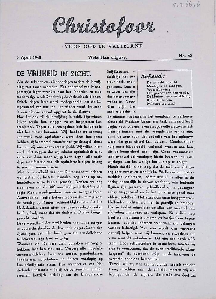 Ons Volk, Den Vaderland ghetrouwe, no 6, april 1944