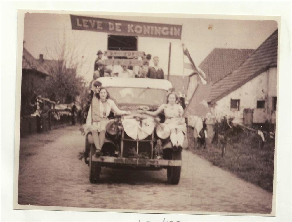 Bevrijdingsoptocht november 1945, meisjes op auto 'l...