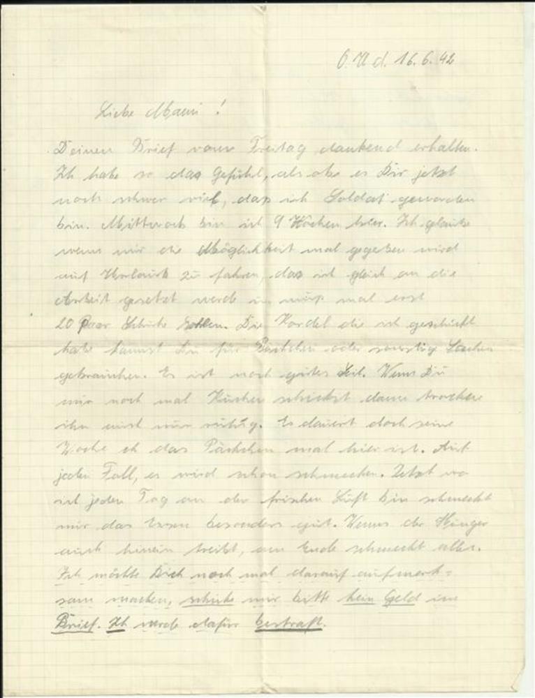 Brief van Heinrich (soldaat) Honig aan zijn ouders f...