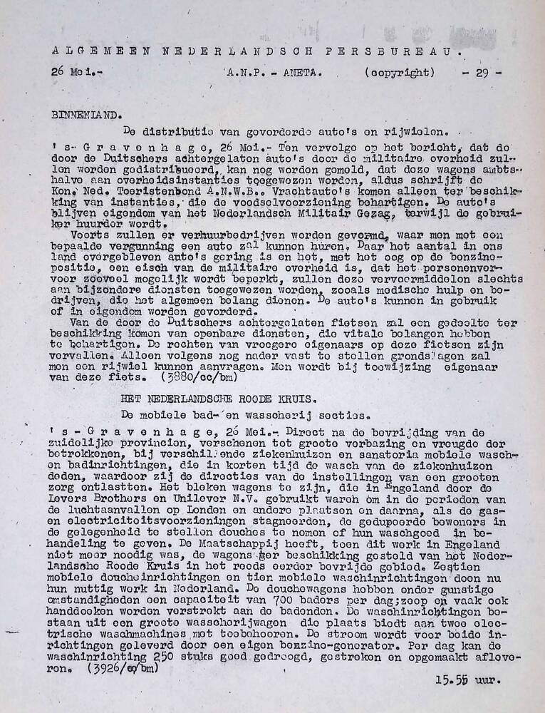 Algemeen Nederlandsch Persbureau, mededelingen, 26 m...