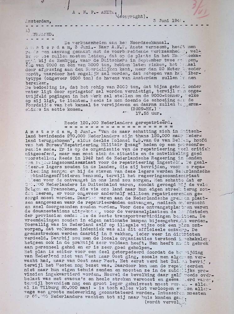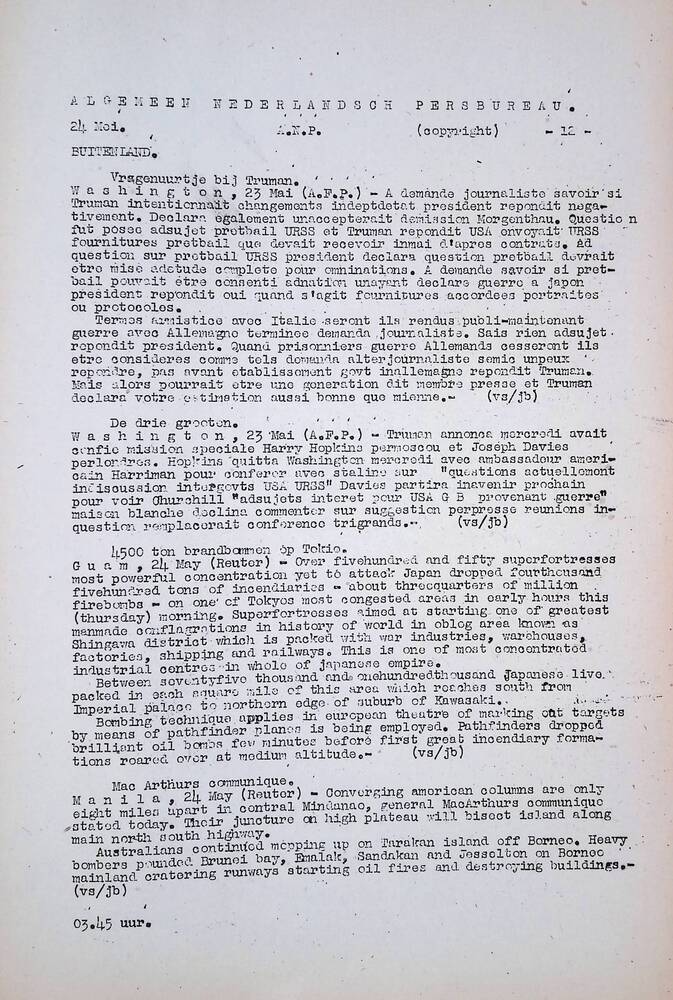 Algemeen Nederlandsch Persbureau, mededelingen, 24 m...